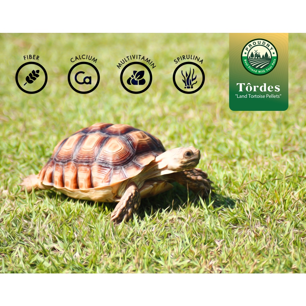 อาหารเต่าบก ไฟเบอร์สูง ลดกรดยูริก เสริมแคลเซียม Spirulina เต่าบกทุกสายพันธุ์ Proudnyfarm TORDES ขนาด 2.5 กิโลกรัม (ถัง)