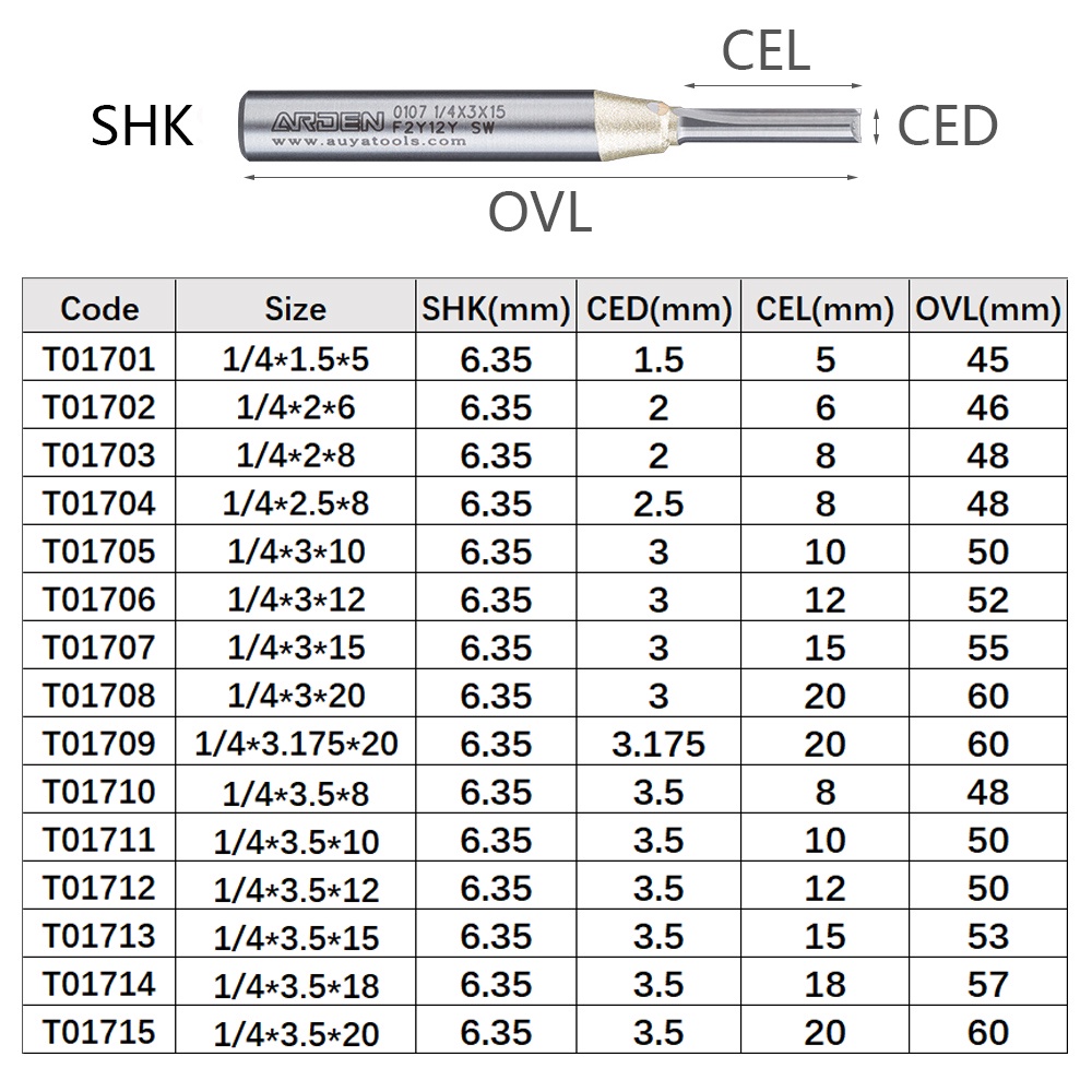 Arden TCT ดอกสว่านเราเตอร์ทังสเตน เหล็กทังสเตน ก้าน 1/4 สําหรับงานไม้ MDF
