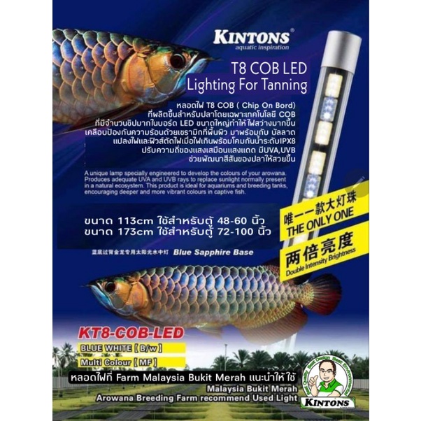 หลอดไฟ Kintons T8 LED COB(Chip On Bord) ให้แสงสว่างมากขึ้น และช่วยพัฒนาสีสันปลา ใช้แล้วน้ำไม่แดง @kintons