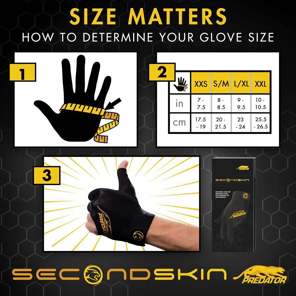 Predator ถุงมือบิลเลียด สำหรับมือซ้าย สีดำ ขนาด XS - XL Second Skin Left Hand Gloves Black