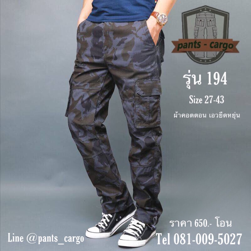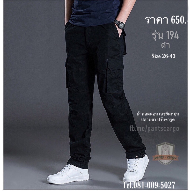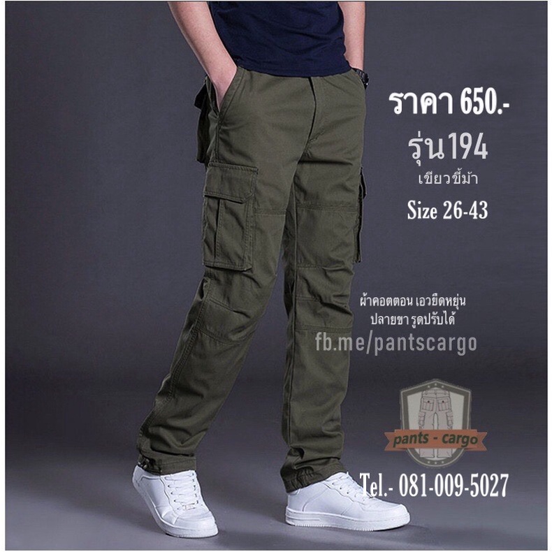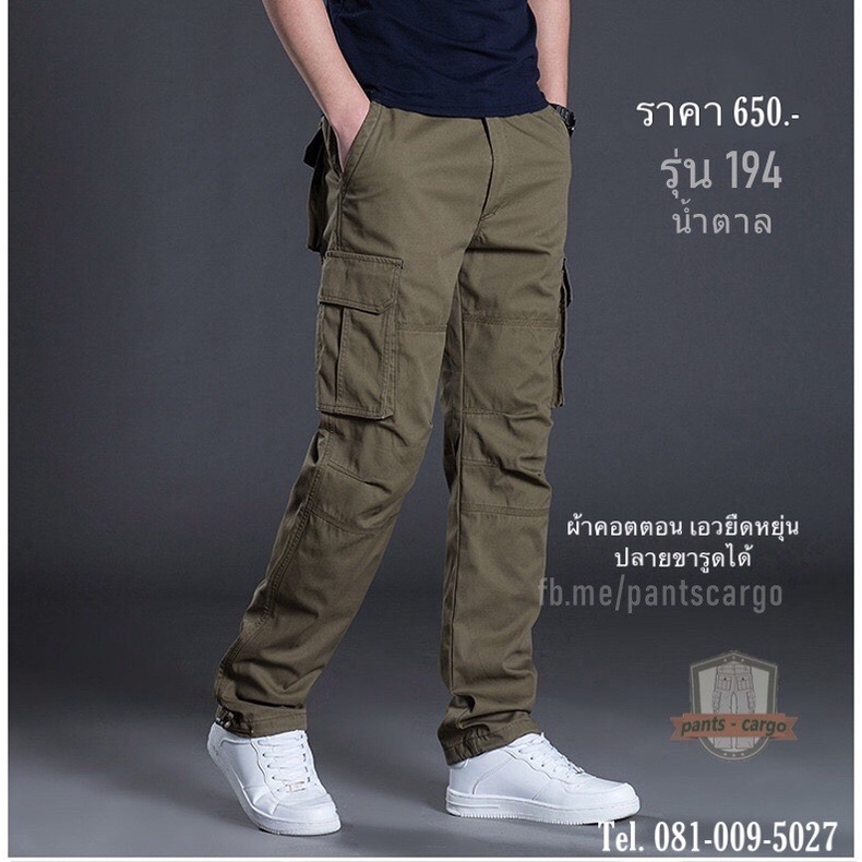 กางเกงคาร์โก้ทรงกระบอกเอวยืดหยุ่น