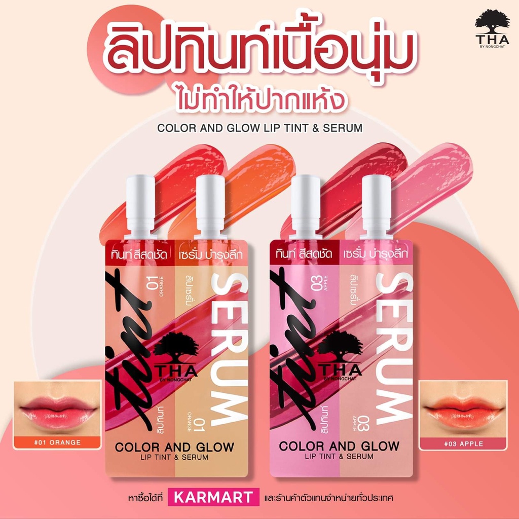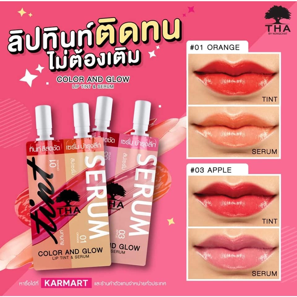 1ชิ้น【น้องฉัตร】🌈ลิปซองคู่ 🌟 ลิปทินท์&กลอส 🌟 กันน้ำ ติดทนมาก THA BY NONGCHAT Color And Glow Lip Tint & Serum