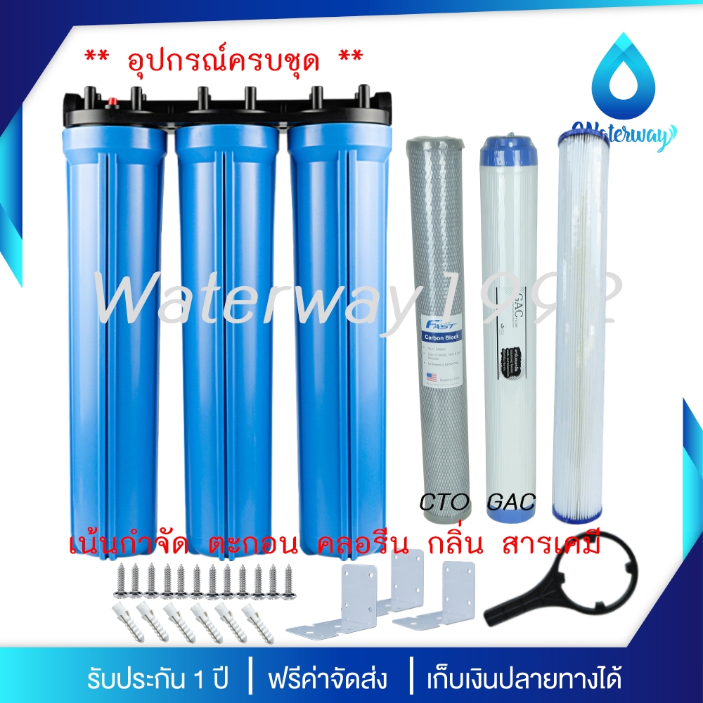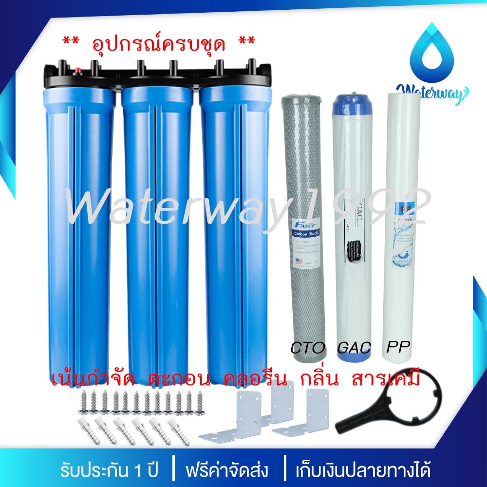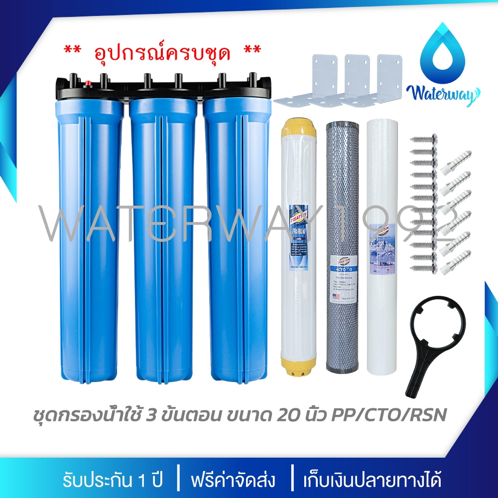UNI PURE เครื่องกรองน้ำ 3 ขั้นตอน ขนาด 20 นิ้ว เกลียว 1/2 นิ้ว (4 หุน) อุปกรณ์ครบชุด พร้อมไส้กรองน้ำ B