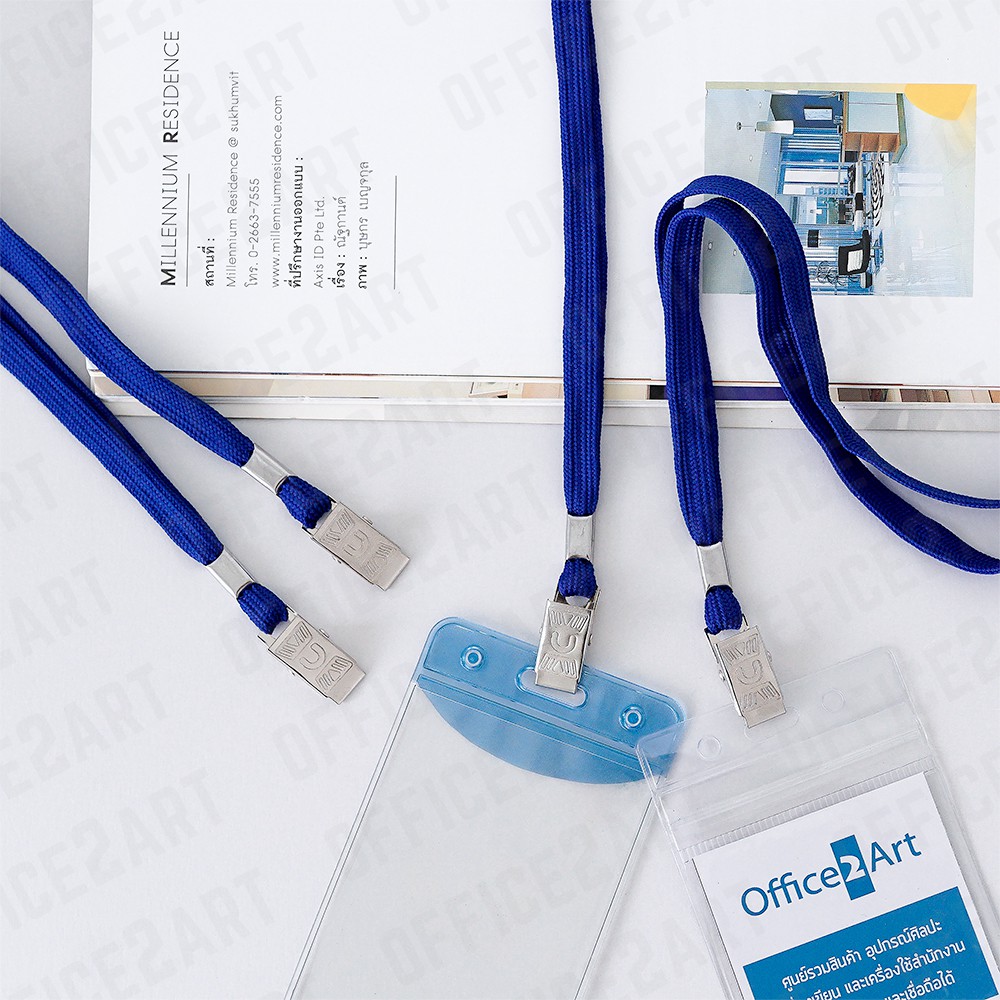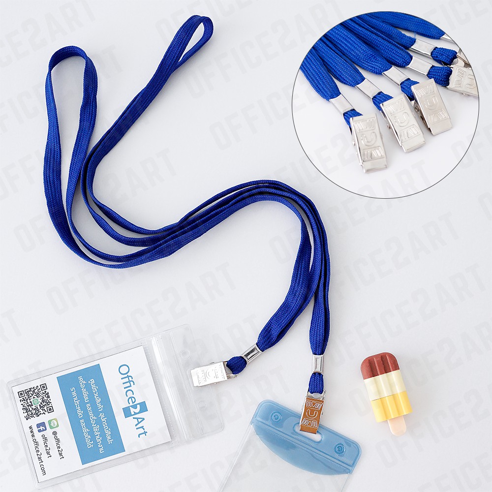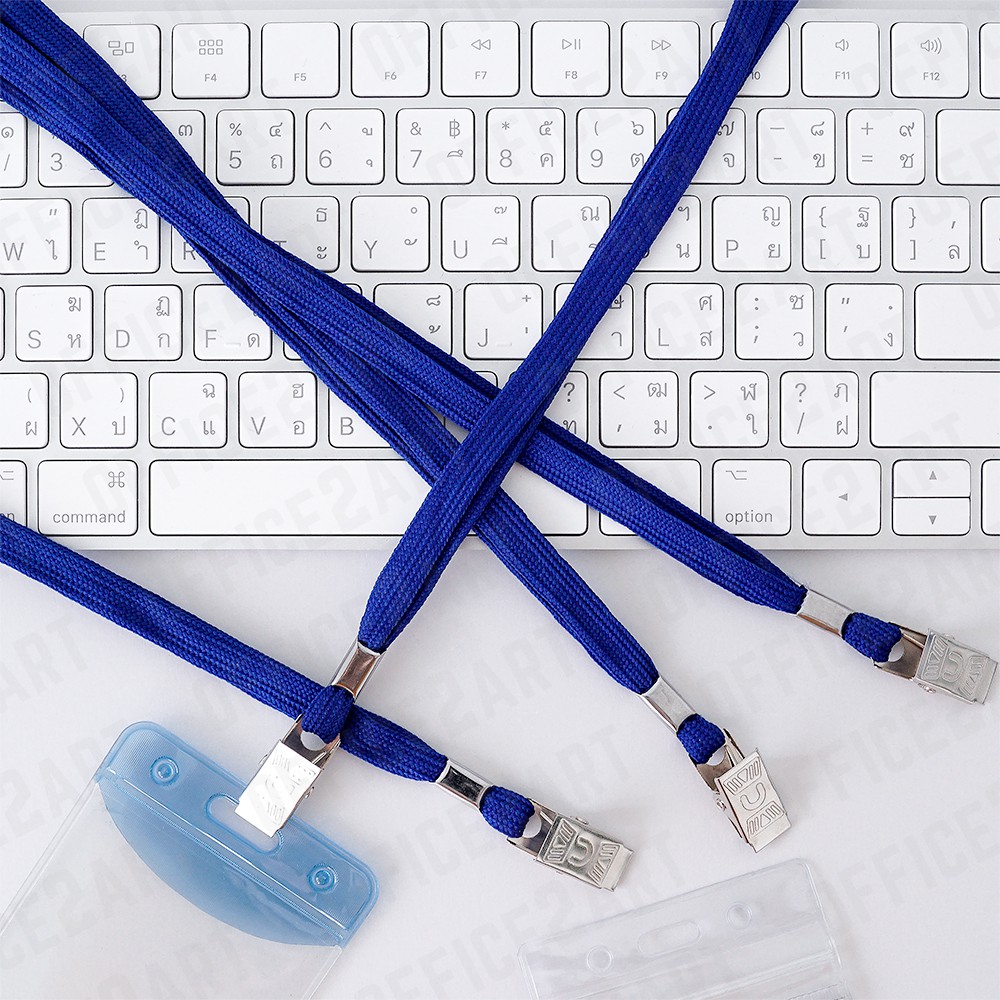 สายคล้องบัตร สายคล้องคอบัตร สายคล้องบัตรพนักงาน รุ่น 013 สีน้ำเงิน (100 เส้น) สำหรับ ป้ายชื่อ บัตรพนักงาน