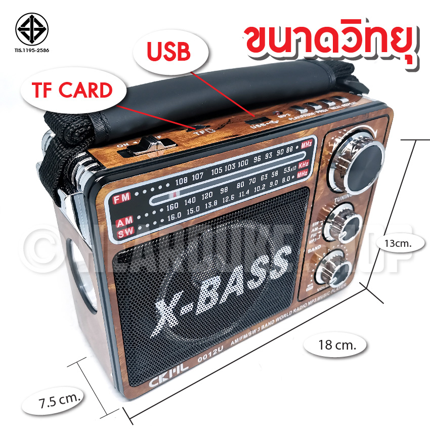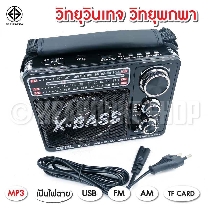 วิทยุ วิทยุพกพา แบตในตัว FM AM CKLรุ่น 0012U วิทยุ X BASS USB TF CARD ไฟฉาย ใช้ไฟบ้าน และใส่ถ่านได้