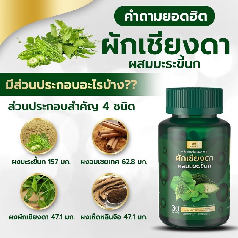 SN9 ผักเชียงดาผสมมะระขี้นกแคปซูล 1 กระปุก บรรจุ 30 แคปซูล บอกลาเบาหวาน ความดัน ไขมัน