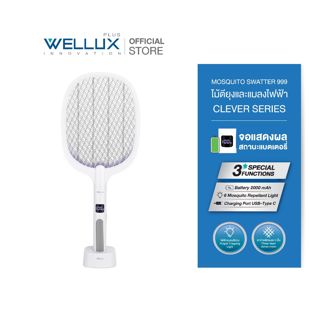 WELLUX ไม้ตียุงมินิมอลพร้อมจอดิจิตอลแสดงผลสุดล้ำ นวัตกรรมเพียงหนึ่งเดียว Innovative Mosquito Swatter