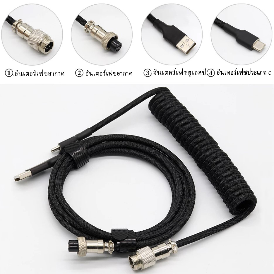 ZIFRIEND สายคีย์บอร์ดเกมมิ่ง/เมคคีย์ แบบขด, USB-C และถักสั่งทำ 8k