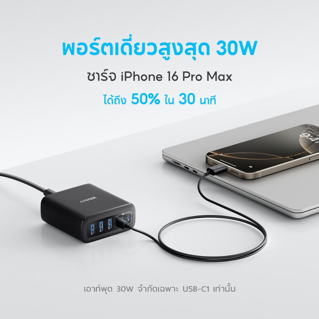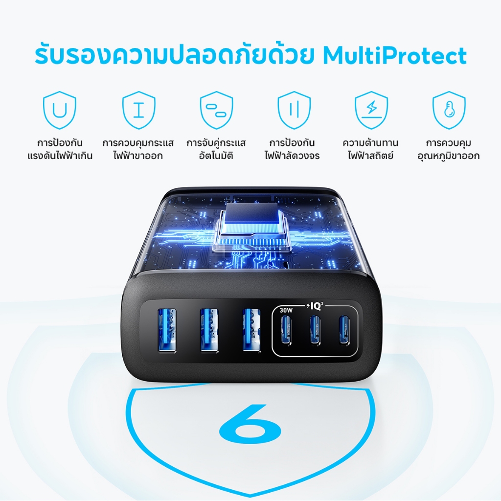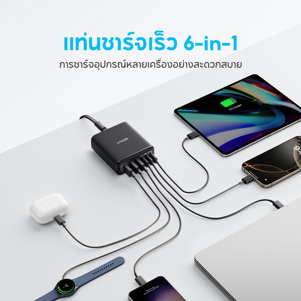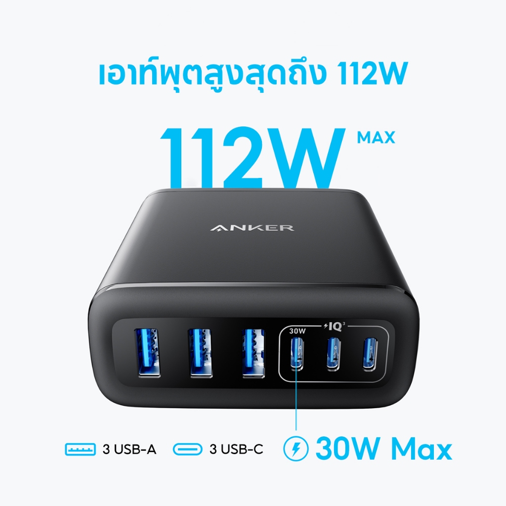 Anker Charger 112W 6-Ports GaN USB-C Charging Station Fast Charging ใช้งานได้กับ MacBook Pro/Air iPhone 17/16/15 Galaxy