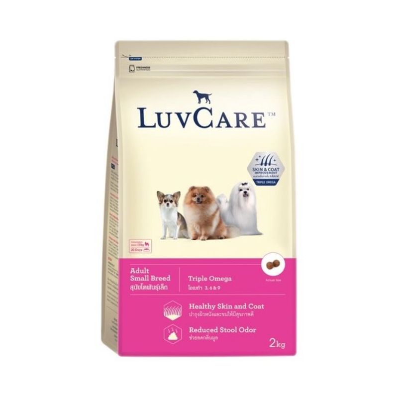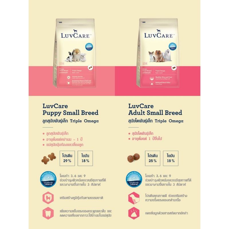 เลิฟแคร์ Luvcare อาหารสำหรับลูกสุนัขและสุนัขโตพันธุ์เล็ก มีโอเมก้า 3,6,9 บำรุงผิวและขน ปริมาณ 2KG