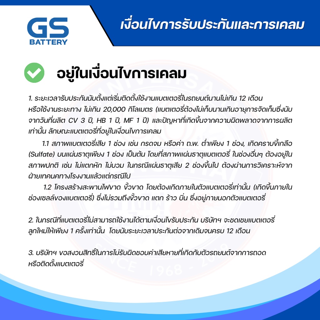 แบตเตอรี่ GS MFX-190R (MF:MFX) 90Amp. (JIS 105D31)
