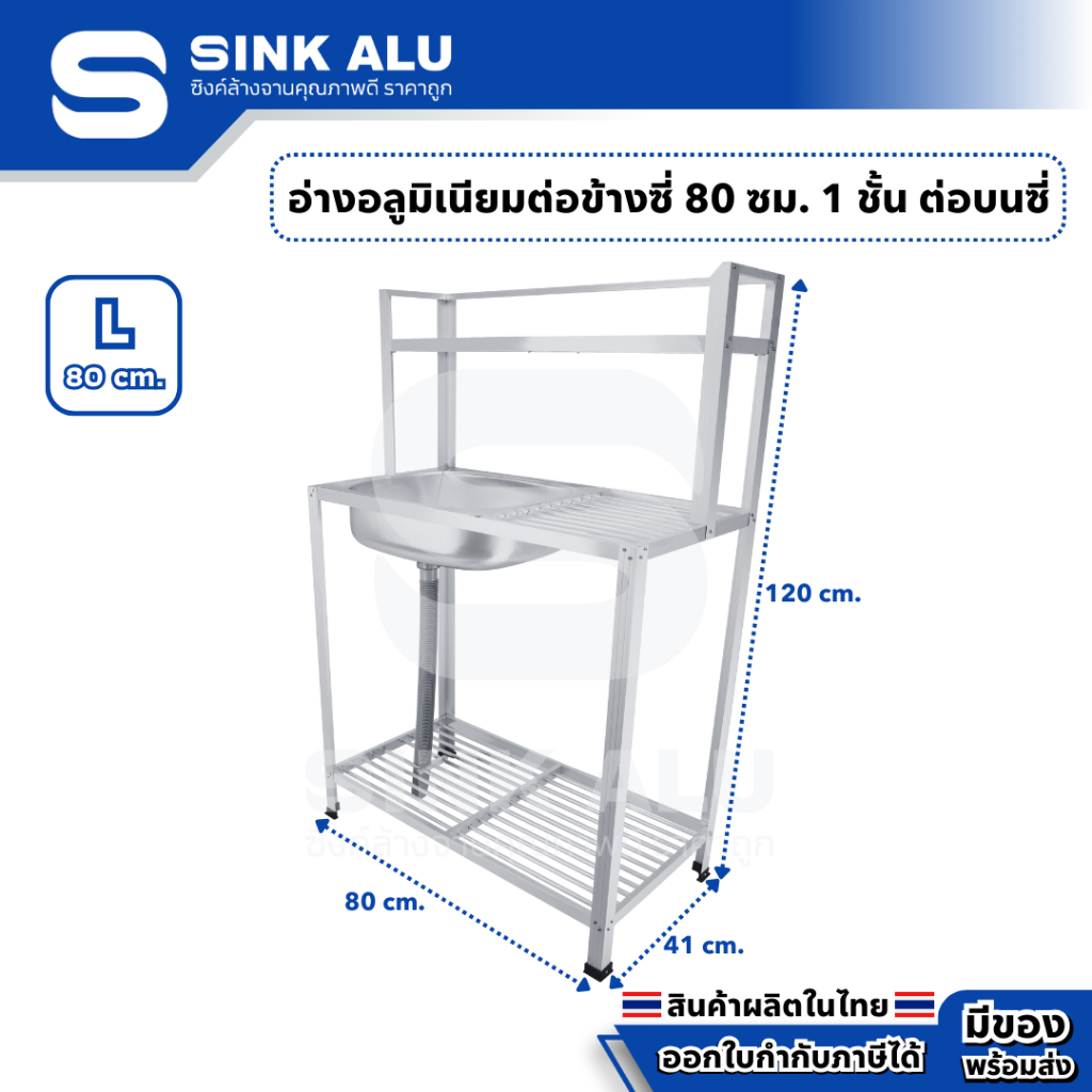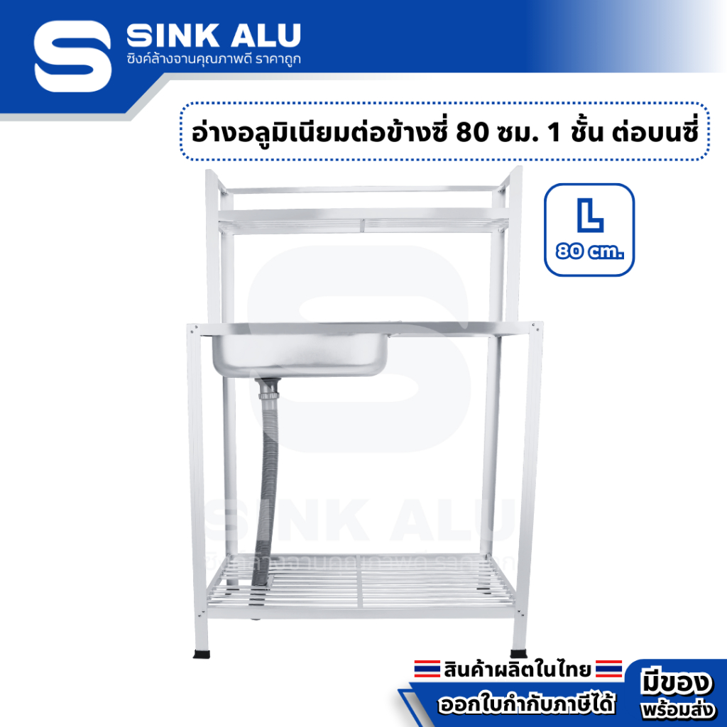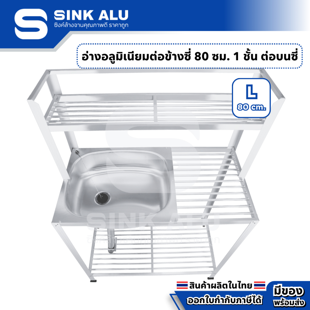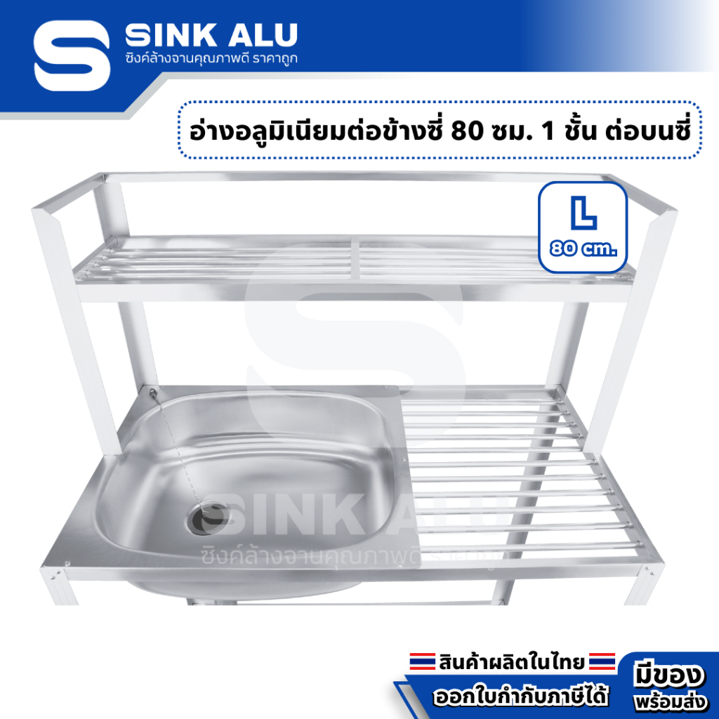 อ่างล้างจาน อลูมิเนียม L-80cm. ที่คว่ำจาน 1 ชั้น ต่อบนซี่ อ่าง อ่างล้างมือ ที่ล้างจาน ซิ้งล้างจาน Sink Alu