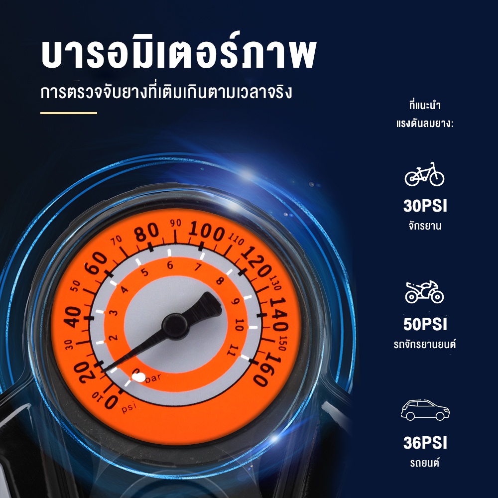 การจัดส่งที่รวดเร็ว⛽ ที่สูบลมจักรยานและมอเตอร์ไซค์ ปั้มลมยาง 160PSI แรงดันสูง จับหนา ปั๊มลมเร็ว