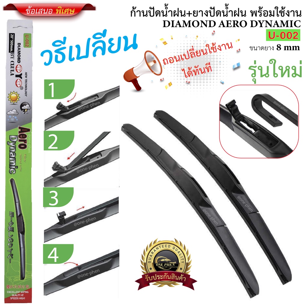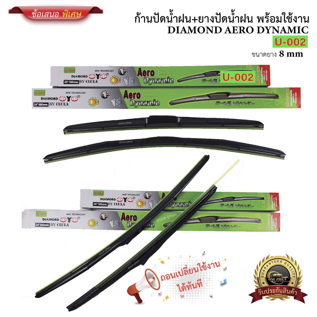 ใบปัดน้ำฝน กล่องเขียว DIAMOND U-002 (1กล่อง/1ชิ้น)