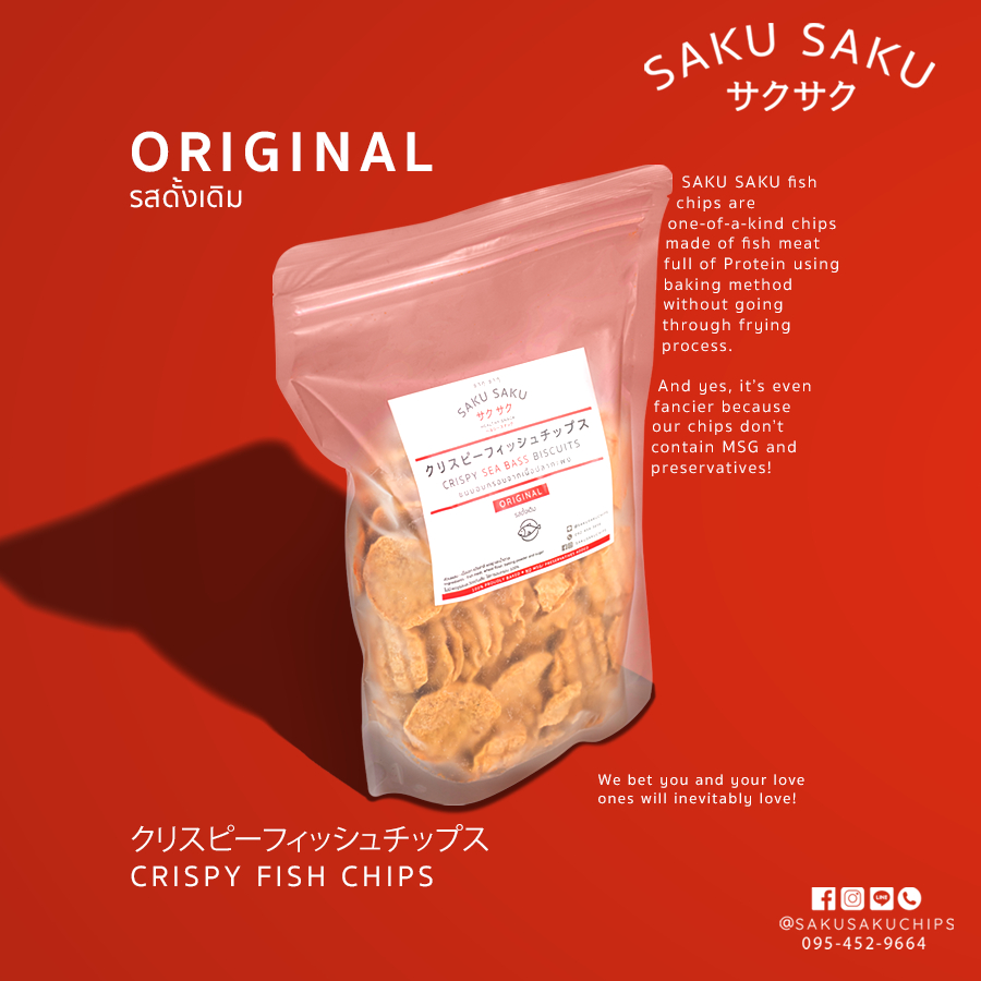 SAKU SAKU ถุง ขนมอบกรอบเนื้อปลาทะเล 90% โปรตีนสูง (เลือกซื้อครบ 3 ถุง ลดอัตโนมัติเหลือ 450 บาท)