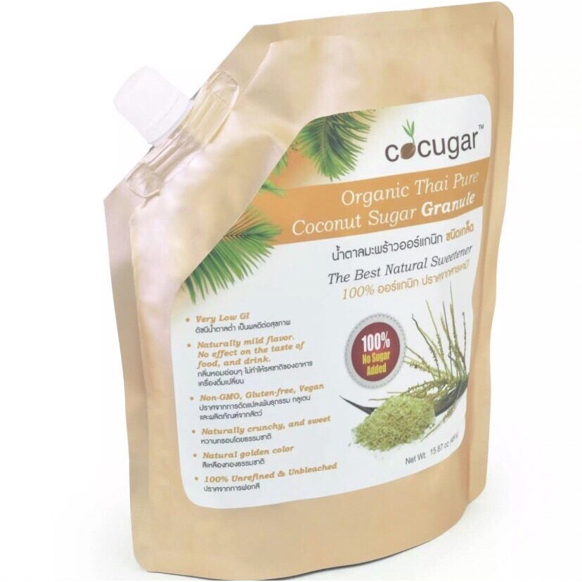 Cocugar น้ำตาลมะพร้าวออร์แกนิก ชนิดเกล็ด 450 กรัม Organic Thai Pure Coconut Sugar Granule 450 g