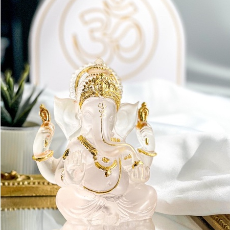 พระพิฆเนศปางรีนาโมจัน ปางขจัดหนี้สิน ขจัดอุปสรรค ความสำเร็จ เรซินใส สูง 5 นิ้ว ทำพิธีเรียบร้อยค่ะ