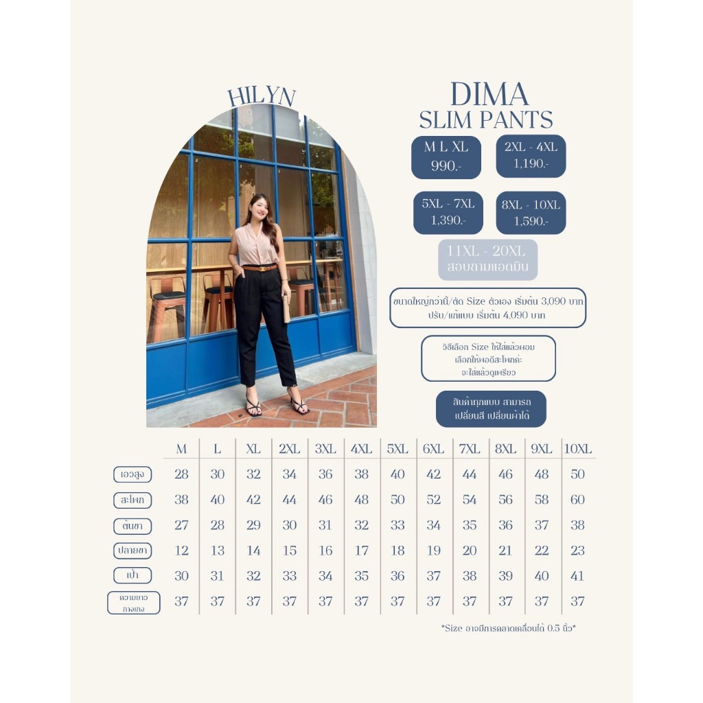 กางเกงขาเดฟพรางหุ่น 5สี สาวอวบใส่แล้วผอม ไซซ์ M-10XL รุ่นDima