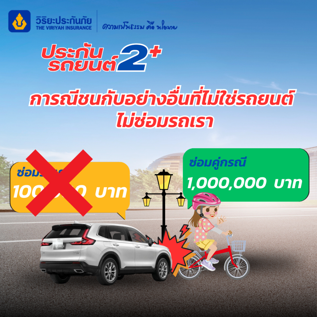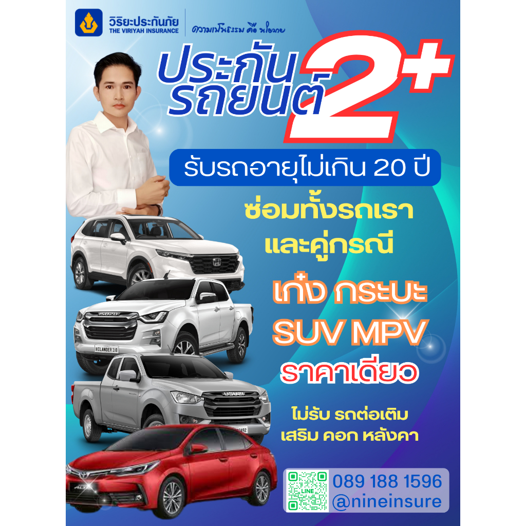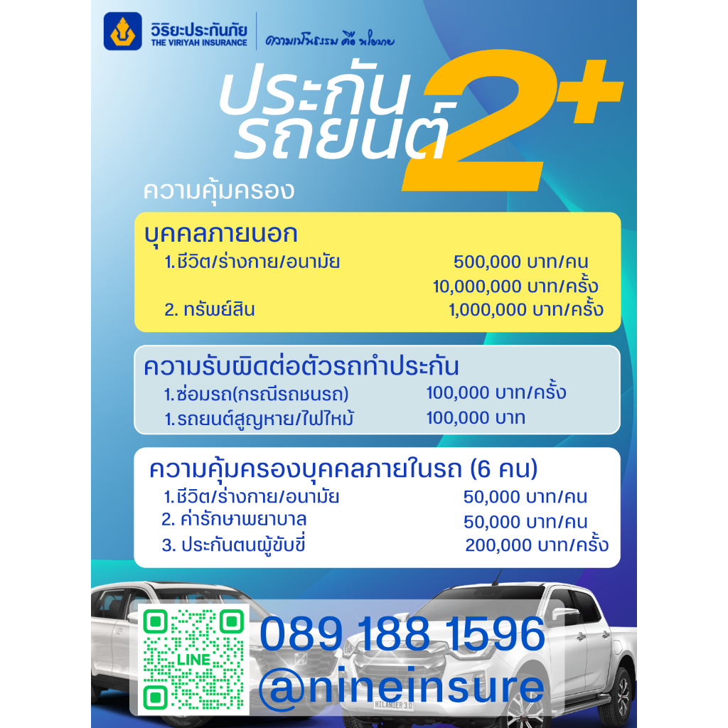 ประกันรถยนต์ 2+ โดย วิริยะประกันภัย ทุน 100,000 บาท คุ้มครอง 90 วัน/ 1850 บาท (รับรถ <20 ปี)