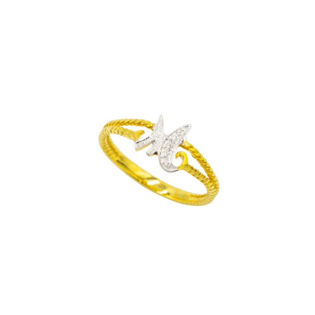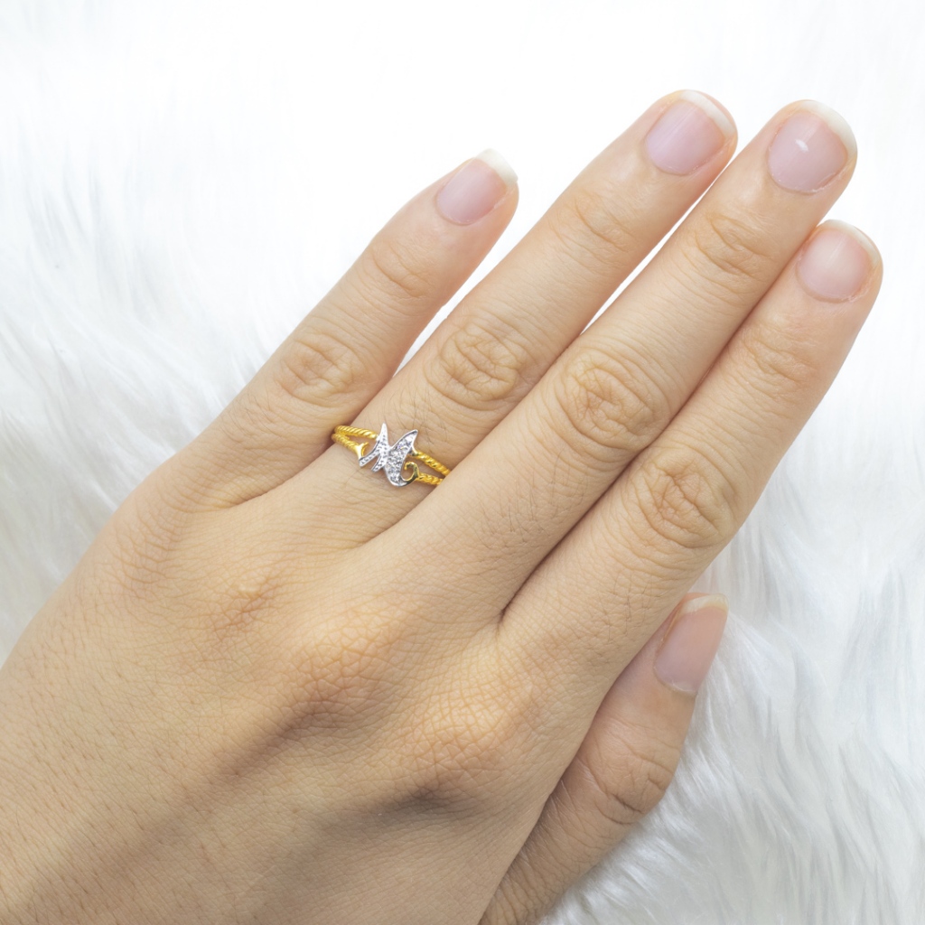 Happy Jewelry แหวนตัวอักษรตัว M ตัวเขียน ก้านไข่ปลา แหวนเพชร แหวนทองเพชรแท้ ทองแท้ 37.5% AL101