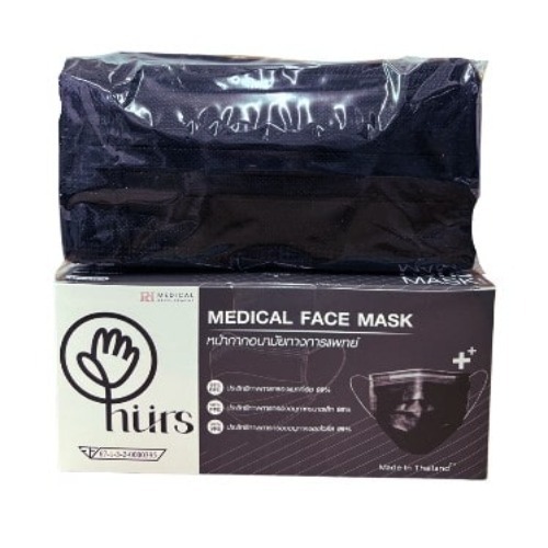 Hurs mask หน้ากากอนามัยเกรดการแพทย์ LEVEL 2 หนา 3ชั้น 50ชิ้น สีเขียว ขาว ชมพู ดำ แมสไทย ผลิตในประเทศไทย