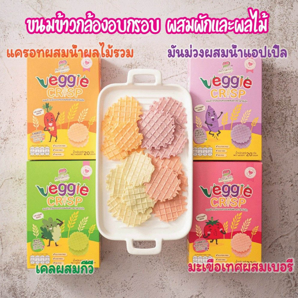 ฟาร์มรัก Veggie Crisp ขนมเด็ก 8 เดือนขึ้นไป (จัดส่ง2ชิ้นขึ้นไป) Gluten Free เด็กแพ้ทานได้