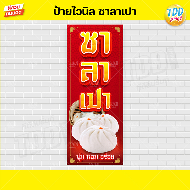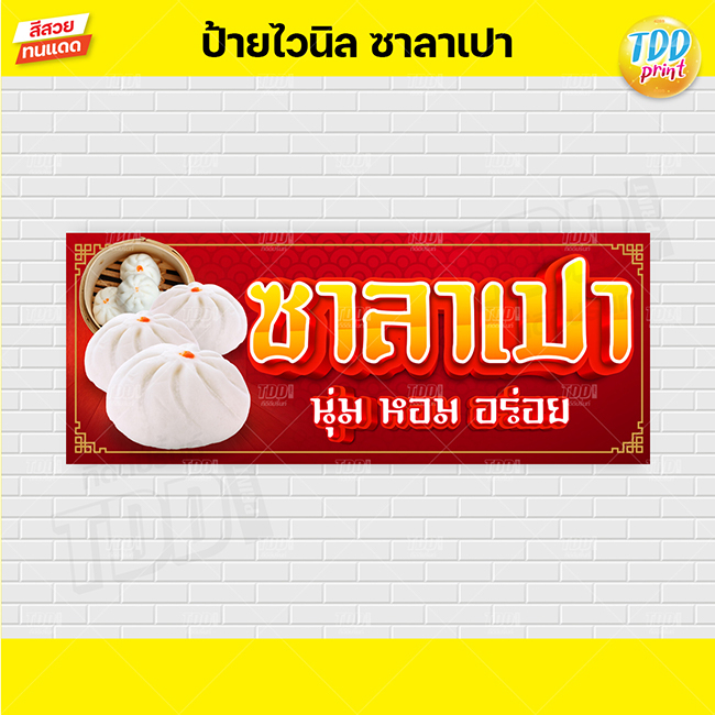 ป้ายไวนิลซาลาเปาV1 ป้ายทนแดด กันน้ำ ภาพคมชัด สีสวยสดใส พร้อมใช้งาน