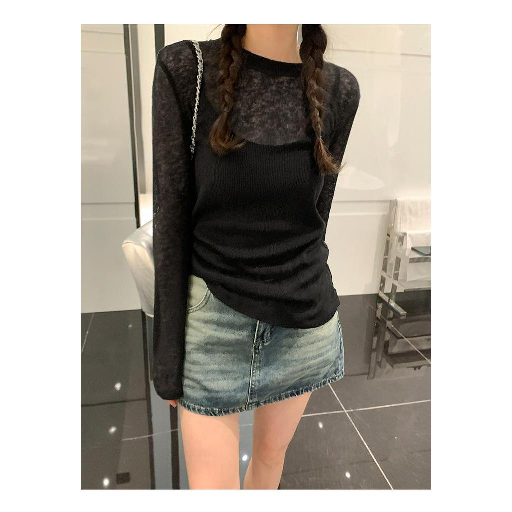 65826 เสื้อยืดแขนยาว ผ้าถัก ทรงหลวม บาง สไตล์ใหม่