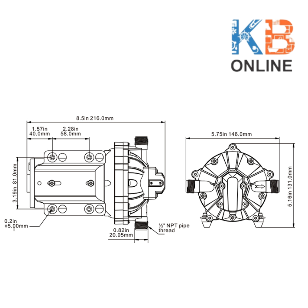 SEAFLO ปั๊มน้ำจืด ไดอะแฟรม ปั๊มน้ำDC 220V ซีรี่ย์ 51 4.2bar 18.9LPM SFDPA2-050-060-51 Diaphragm Pump (Series 51 NEW)