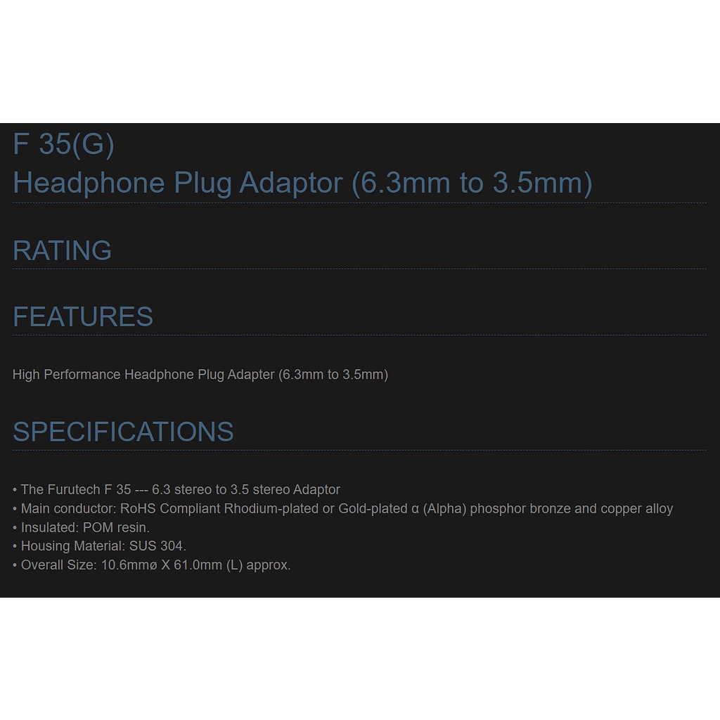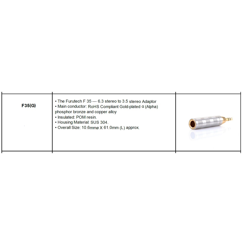 Furutech F35(G) Stereo 3.5mm-6.3mm Adapter ของแท้ศูนย์ไทย / ร้าน All Cable