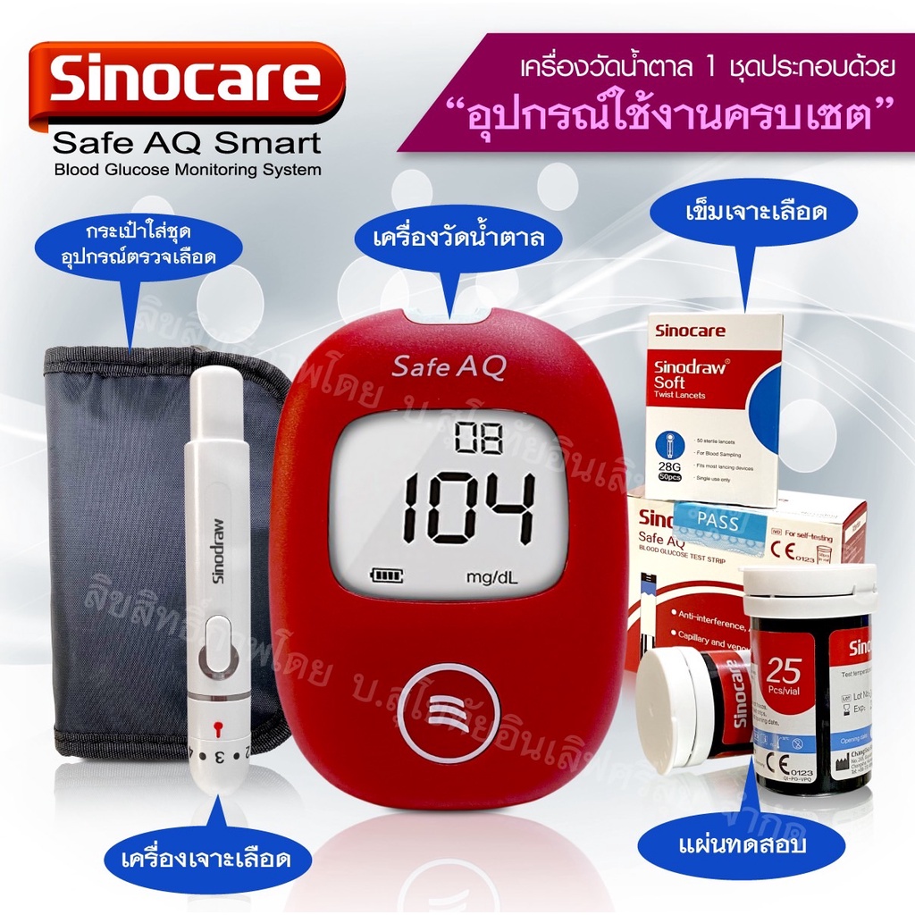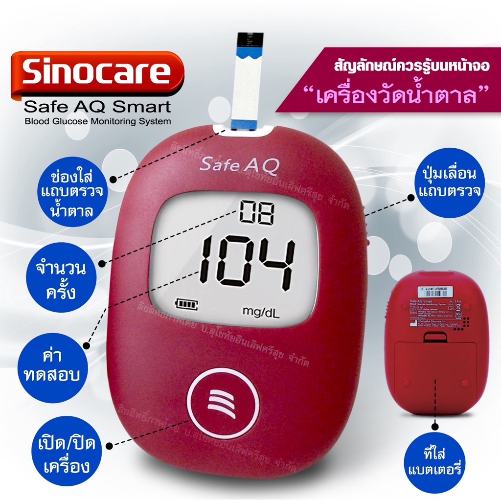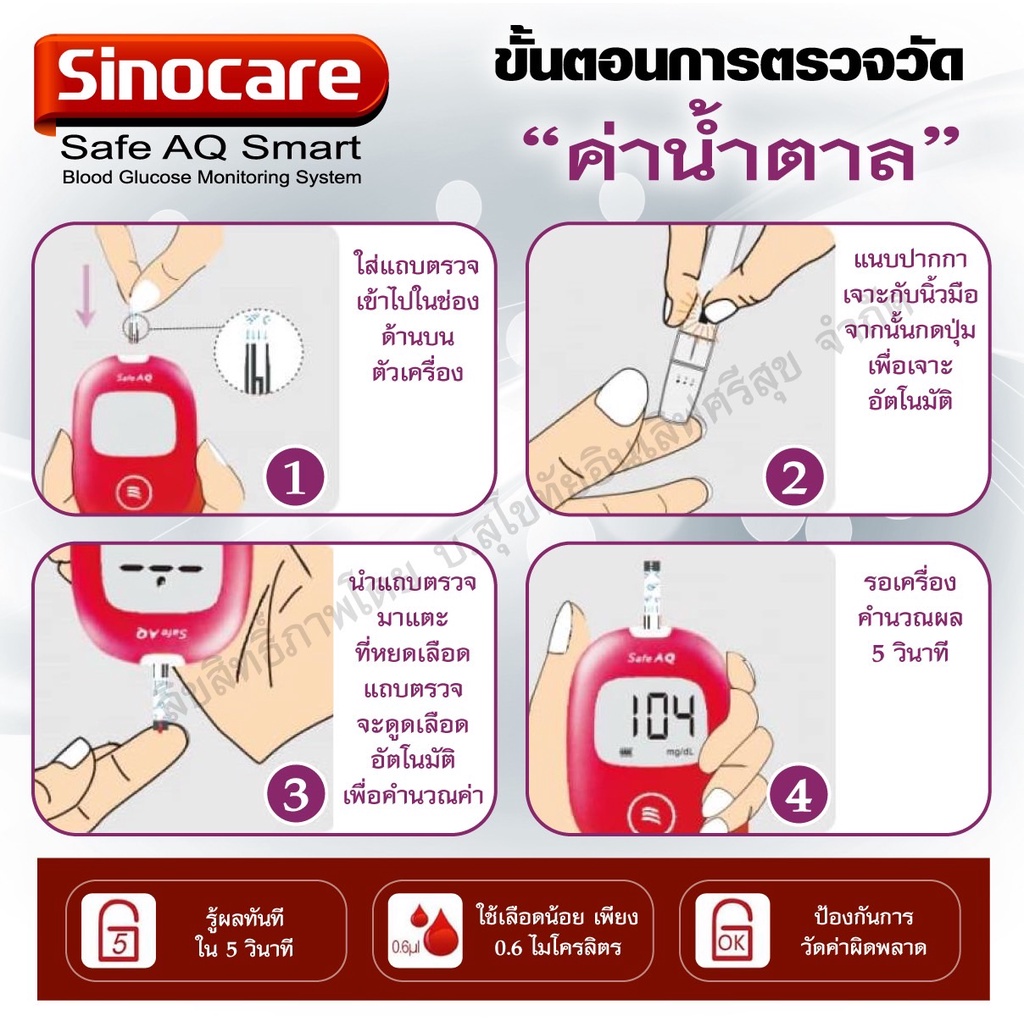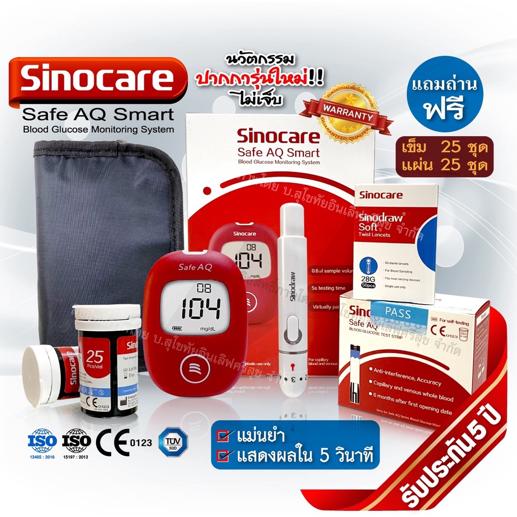 เครื่องวัดน้ำตาลในเลือด Sinocare Safe AQ Smart เครื่องตรวจเบาหวาน ของแท้ มีประกัน 5 ปี