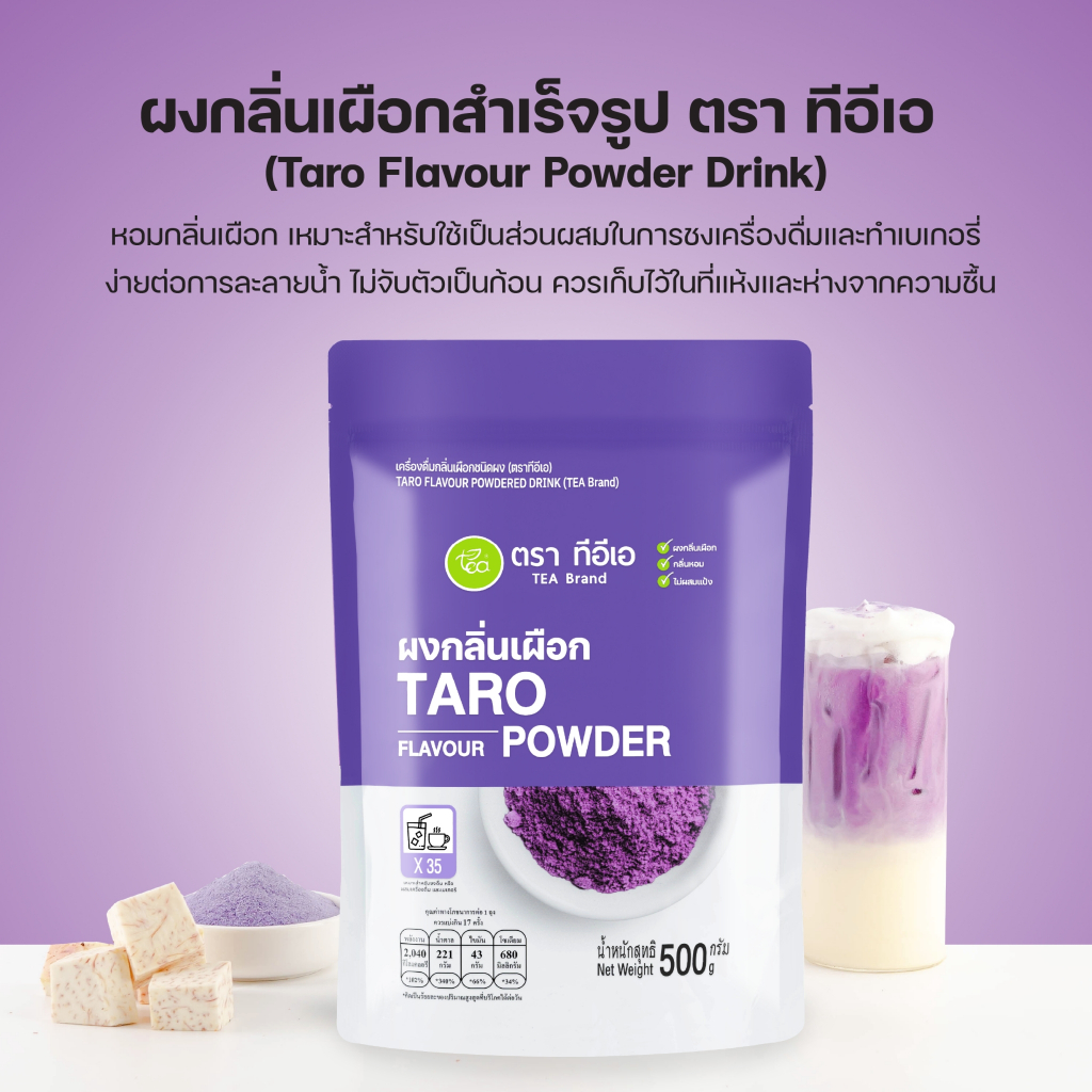 ทีอีเอ ผงกลิ่นเผือก ผงนมเผือก ผงเผือกหอม มันม่วงนม ผงเครื่องดื่ม สำเร็จรูป Taro Powde 500 กรัม