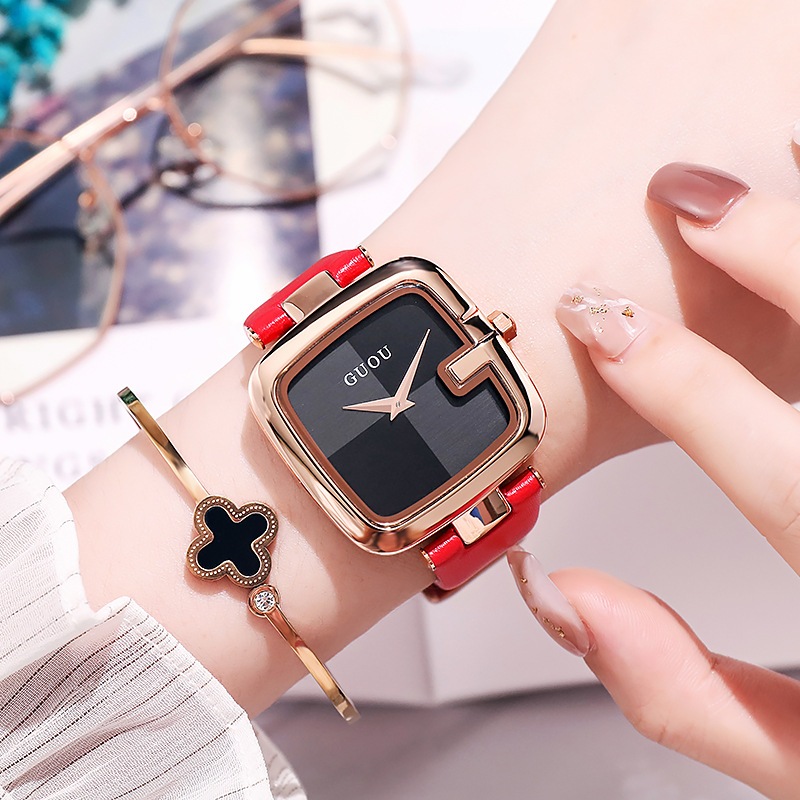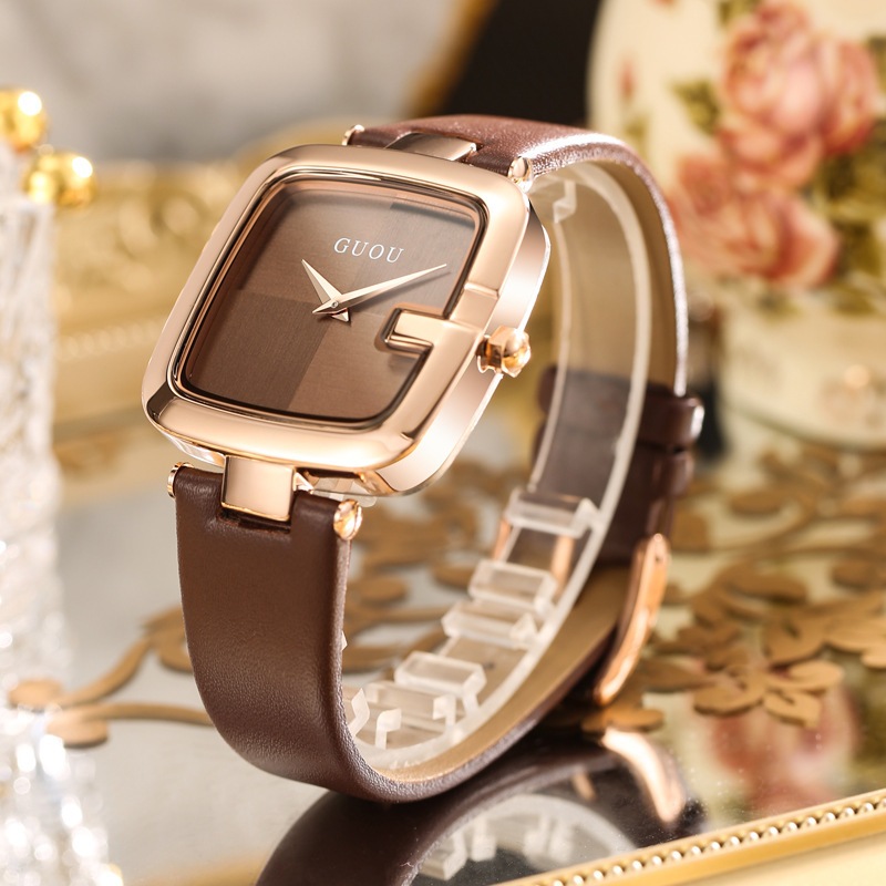 Guou แบรนด์แท้ 100% ร้านไทยส่งเร็ว นาฬิกาผู้หญิง รุ่นยอดนิยม เรียบหรู สายหนังคุณภาพดี