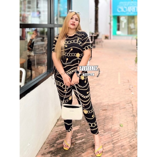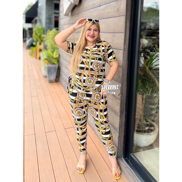 ชุดเซ็ต เสื้อผูกข้างไซส์สาวอวบเนื้อผ้าไอทีวาย ยืดได้ตามตัว