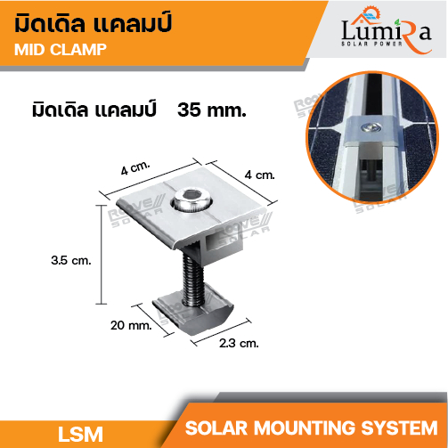 Lumira อุปกรณตัวยึดแผงโซล่าร์เซลล์ Solar Mounting อุปกรณ์ติดตั้งแผงโซล่า อลูมิเนียม มาตราฐาน T5