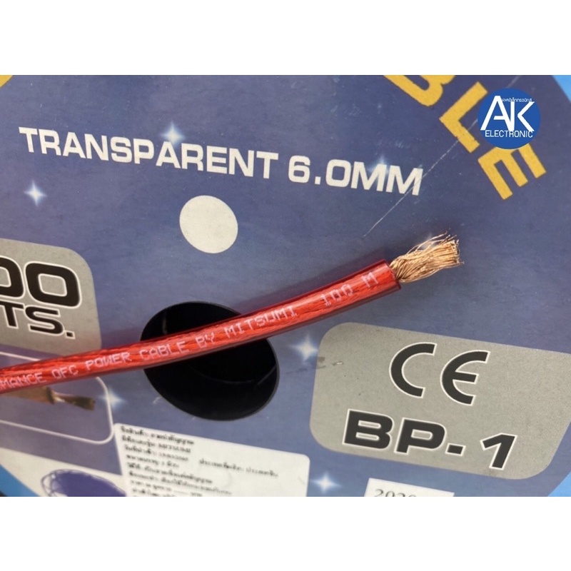 สายแบต สายแบตเตอรี่ MITSUMI BP-1 6 SQ.MM(ยกม้วน 100 เมตร) ติดตั้งเครื่องเสียง สายแบตรถยนต์ 6 มิล เต็ม สายแบตทองแดงผสม