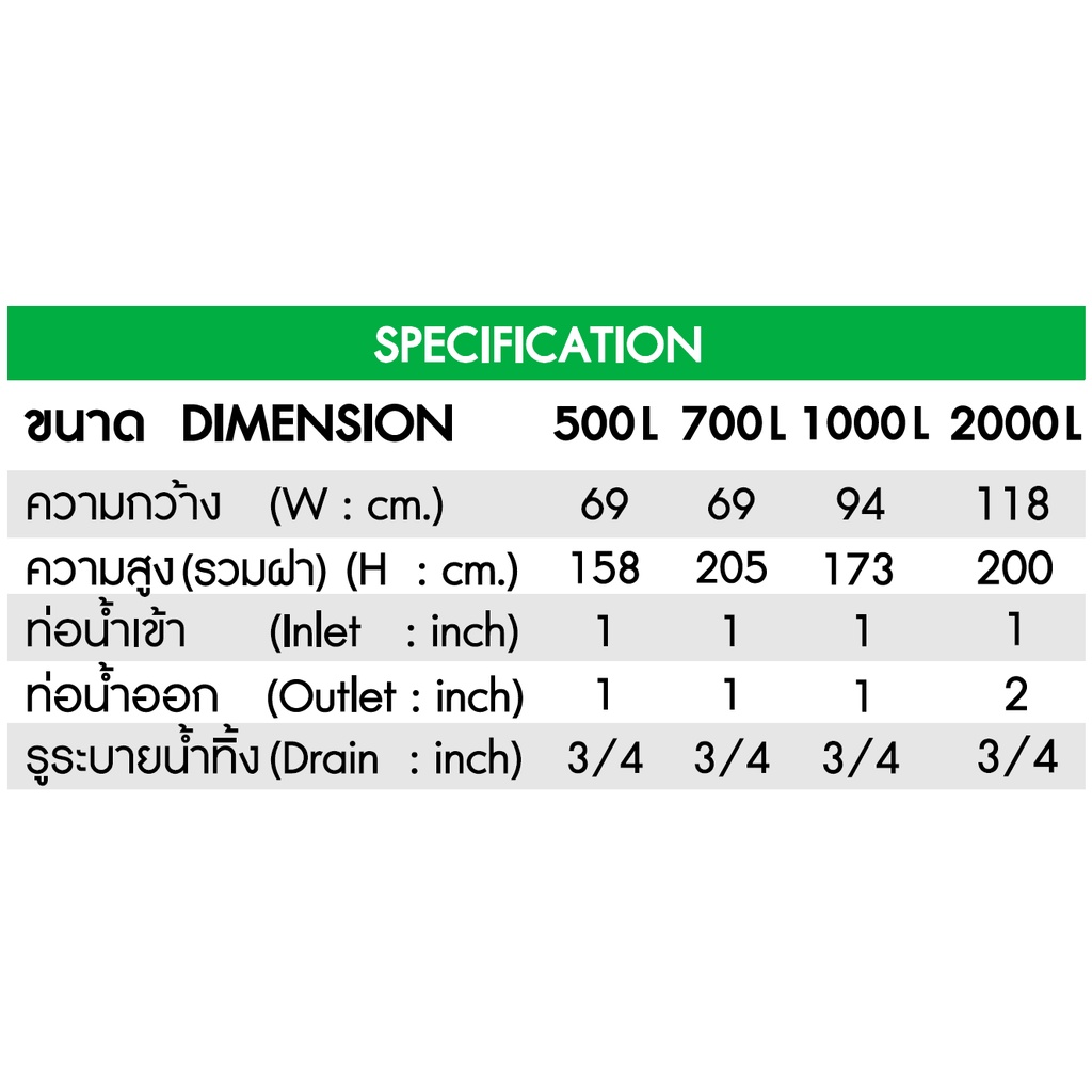ถังเก็บน้ำ DOS รุ่น Paradise ขนาด 500, 700, 1000, 2000 ลิตร (ฟรีลูกลอย ขนาด1")