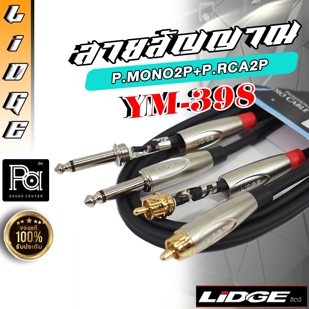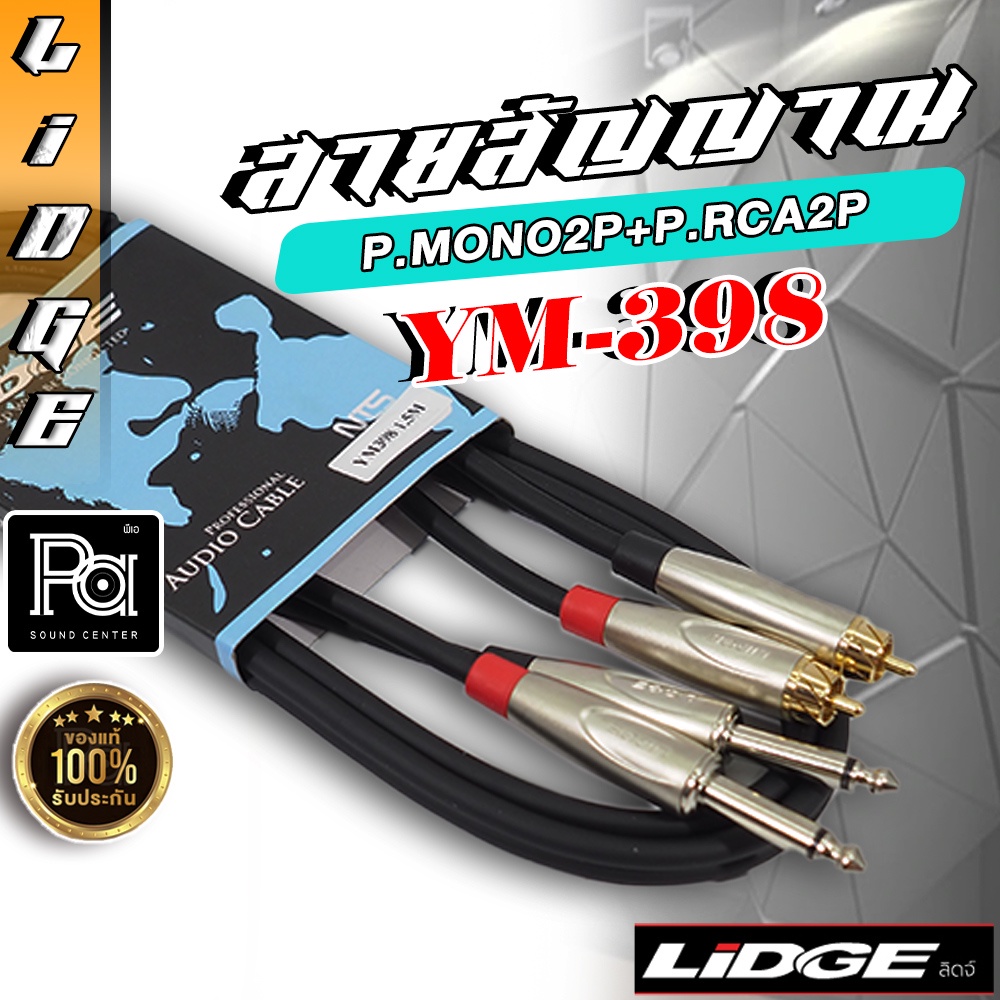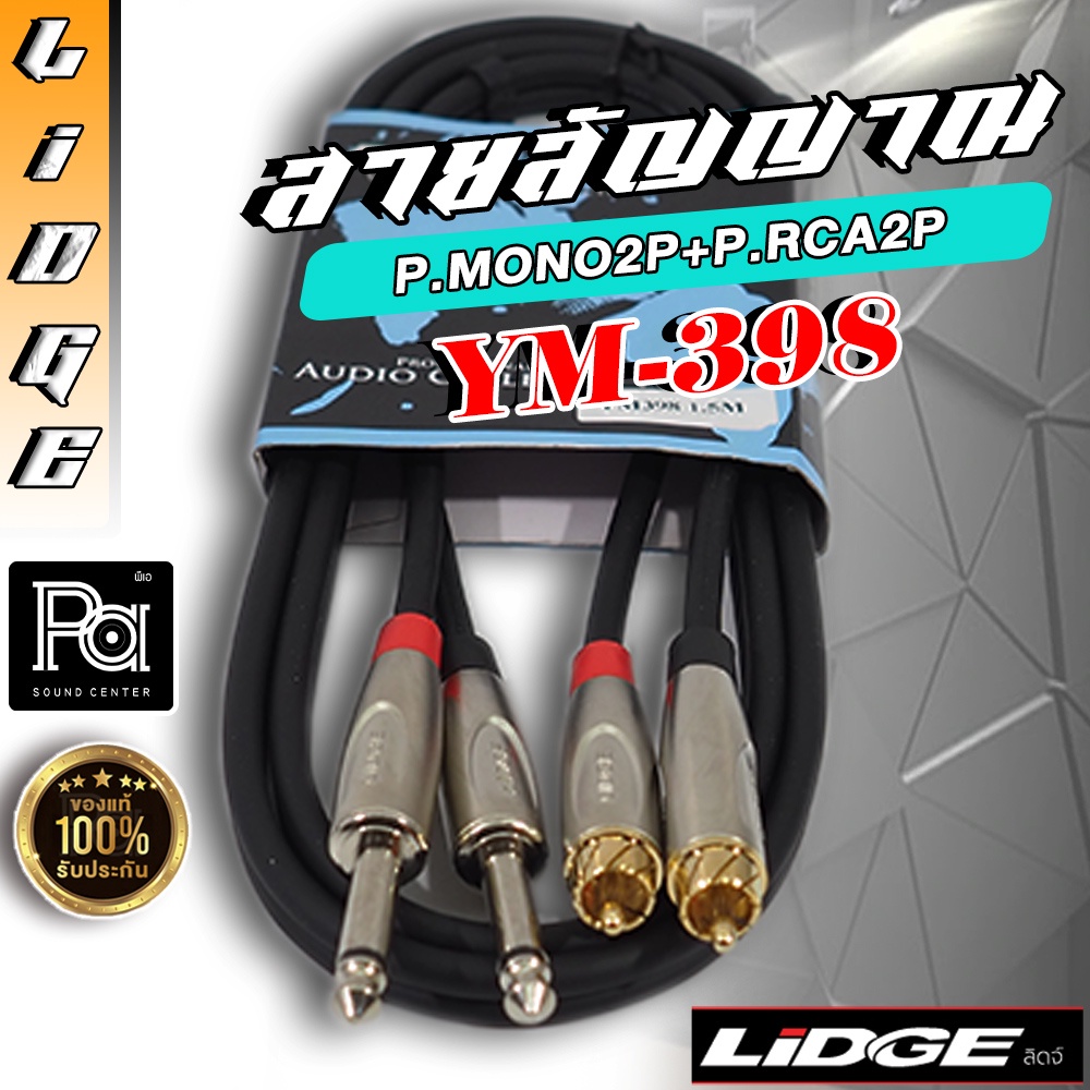 LIDGE YM-398 1.5m. สายสัญญาณ ปลั๊ก RCAx2 - ปลั๊กโฟนโมโนx2 ยาว 1.5 ม. พีเอ ซาวด์ เซนเตอร์ PA SOUND CENTER