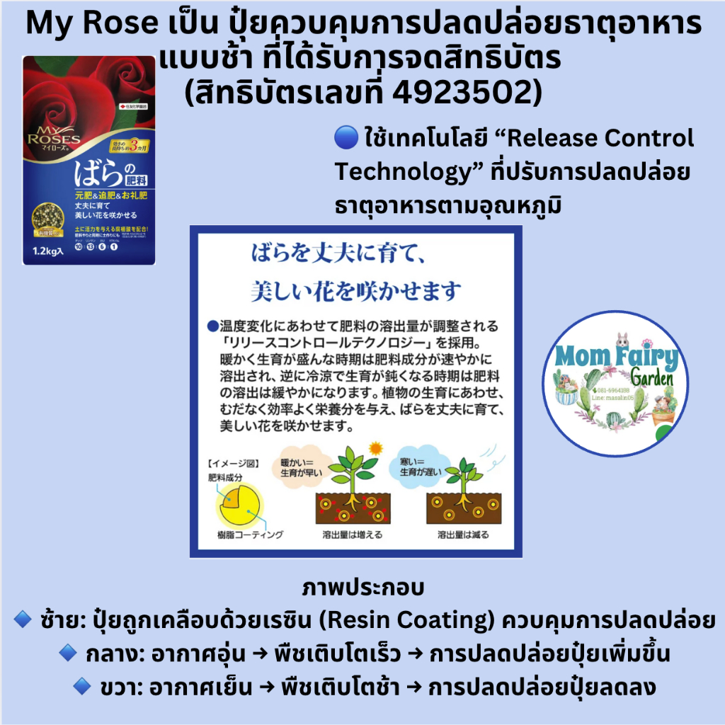 ปุ๋ยกุหลาบ My Rose ปุ๋ยเม็ดละลายช้า Sumitomo เร่งดอก ดอกดก ปุ๋ยไม้ดอก 2-3เดือน 700g/1.2kg