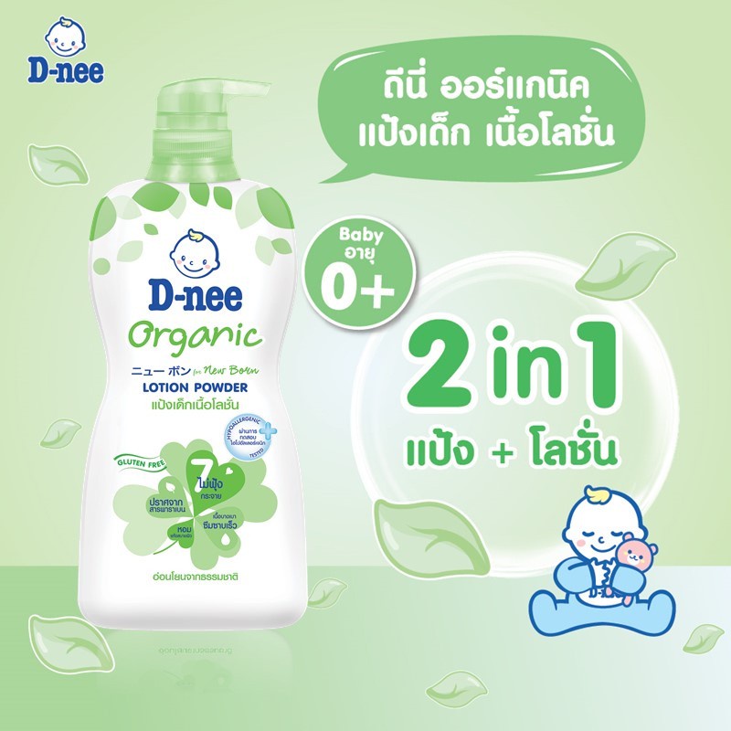 [แพ็ค3] D-nee ดีนี่ แป้งเด็กเนื้อโลชั่น Organic For New Born สูตรออร์แกนิค 400 มล. x3