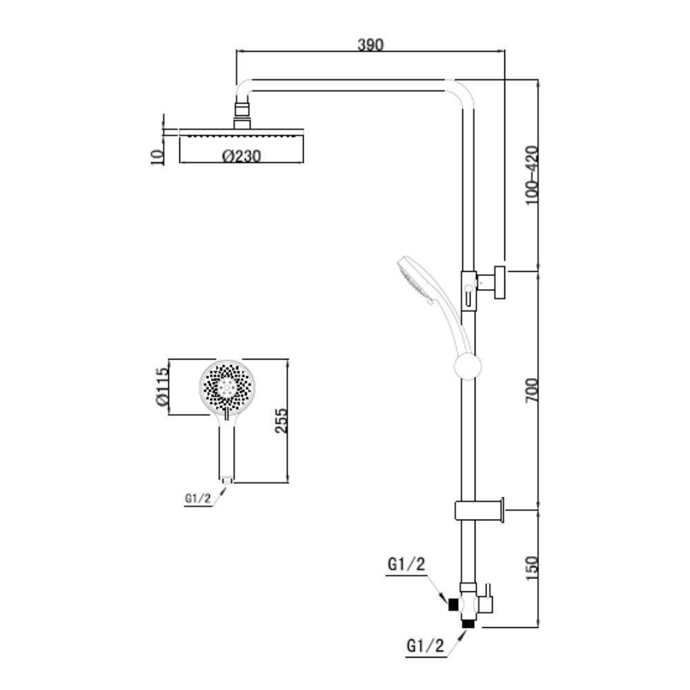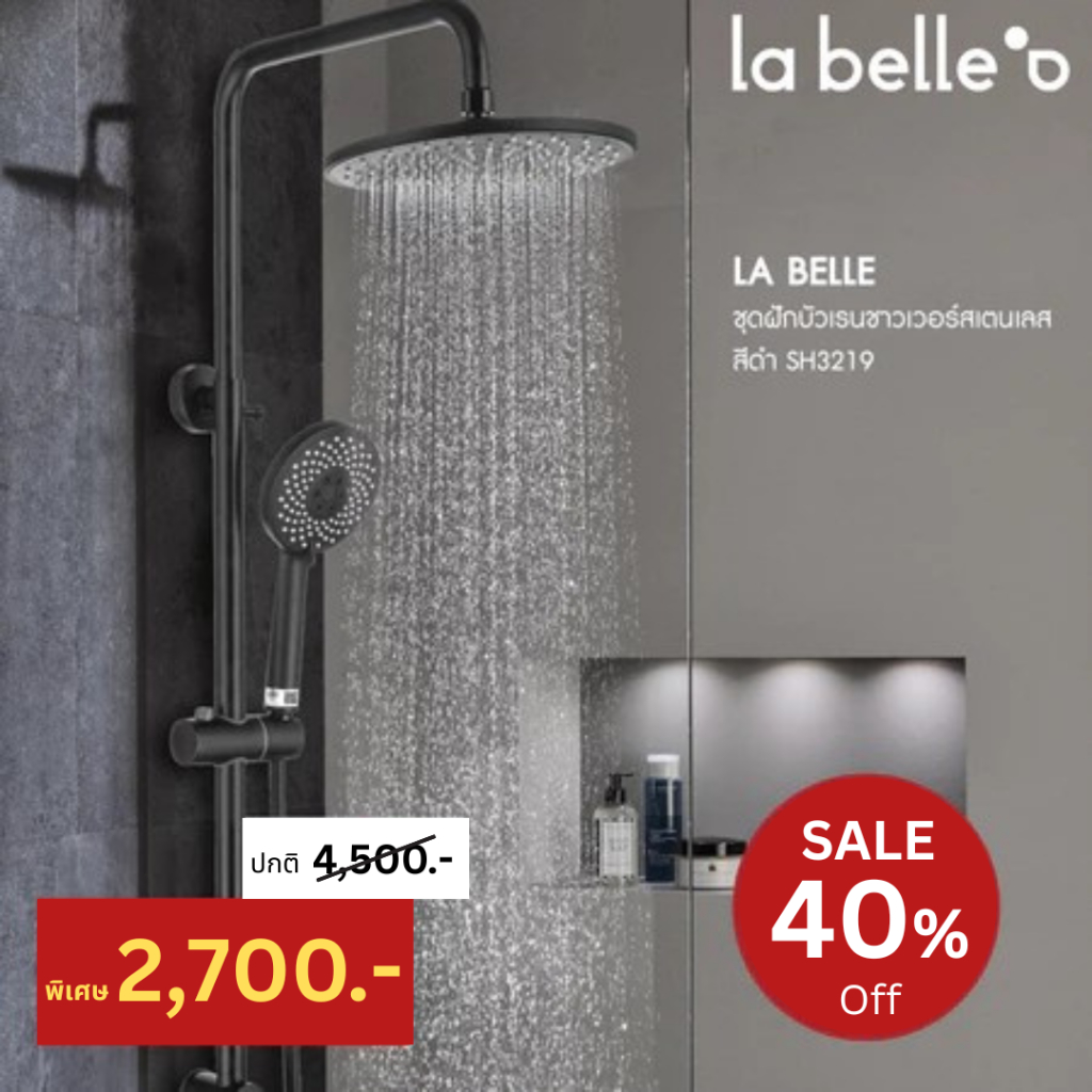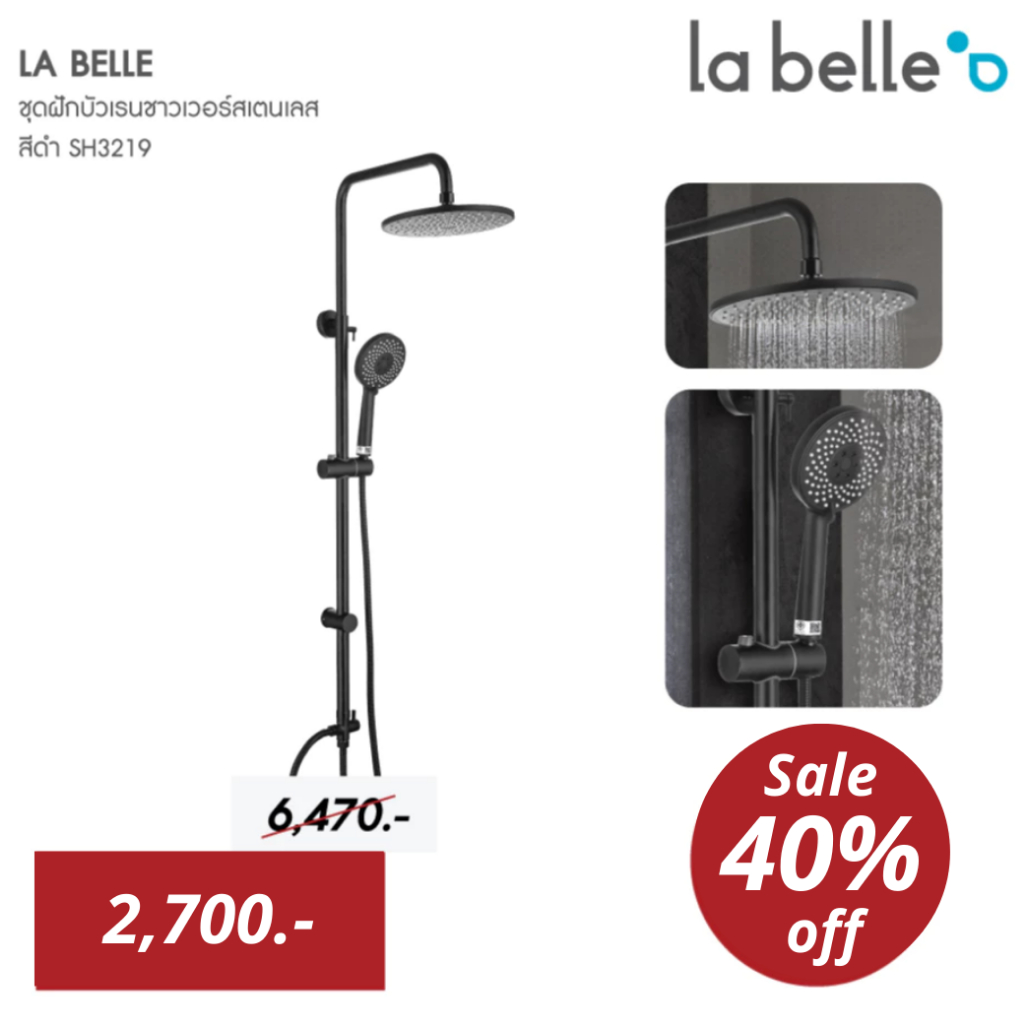 LA BELLE ชุดฝักบัวเรนชาวเวอร์สแตนเลสก้านแข็งสีดำพร้อมฝักบัวมือถือ 3 ระบบ ติดตั้งเครื่องทำน้ำอุ่นได้SH3219