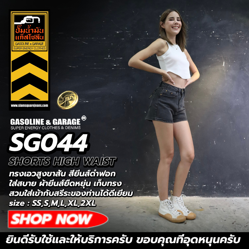 SG043 SG044 กางเกงยีนส์ยืด เอวสูงพิเศษ ขาสั้น เก็บทรงดีมาก (Gasoline & Garage) ปั๊มน้ำมันแก๊สโซลีน (SG)