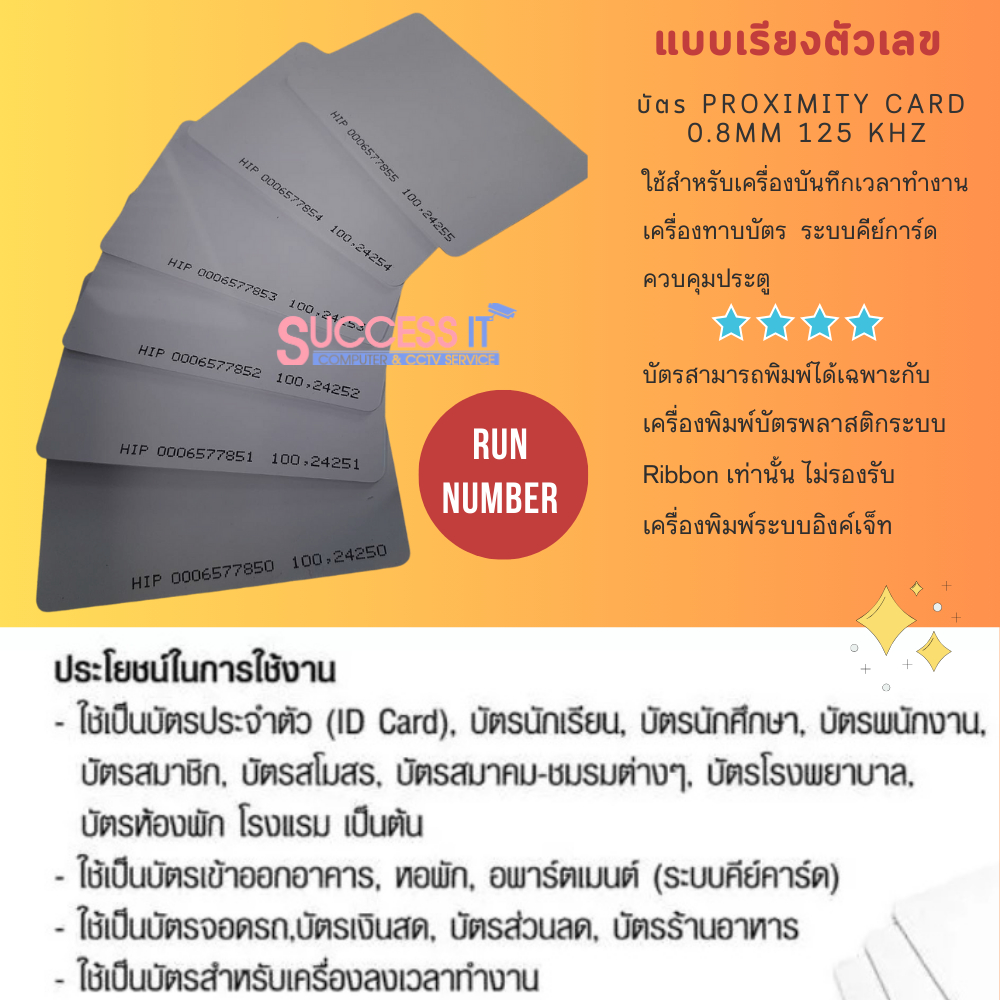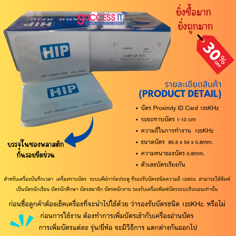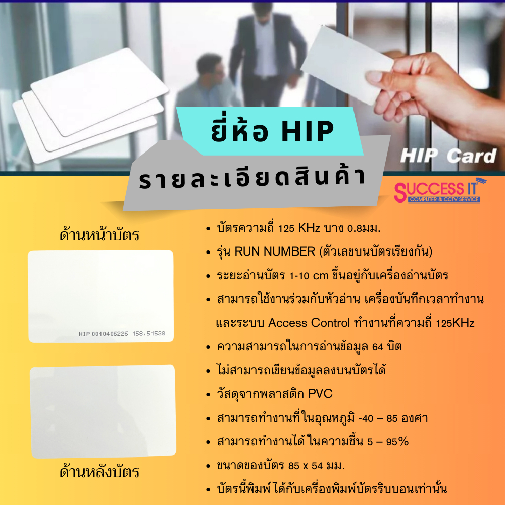 บัตรคีย์การ์ด HIP Card 125KHz 0.8mm Run Number เลขเรียงกัน สำหรับระบบประตูคีย์การ์ด