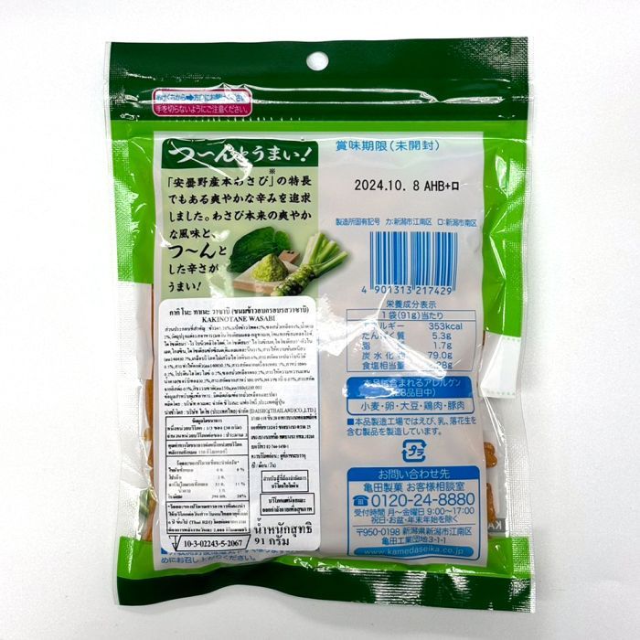 คาเมดะ คาคิโนะทาเนะ ขนมข้าวอบกรอบรสวาซาบิ ขนาด 91 กรัม - Kameda Kaki no Tane Wasabi