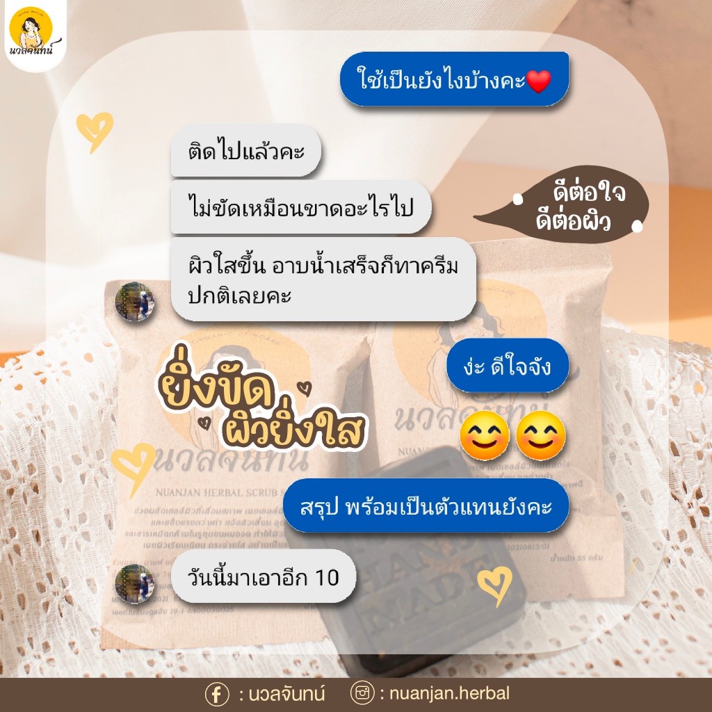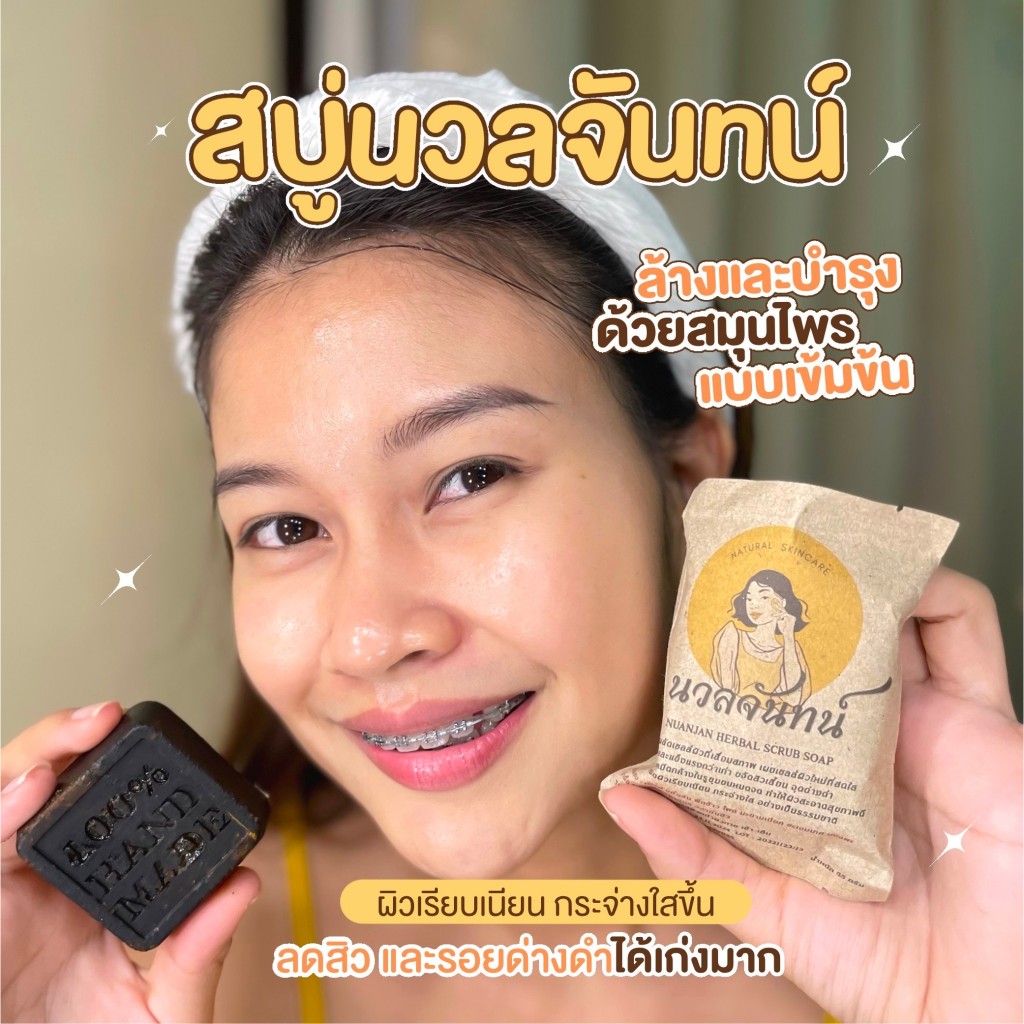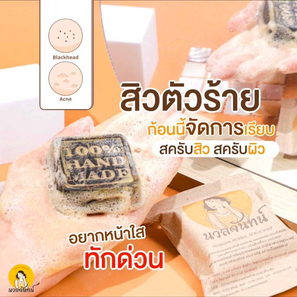 (3 ก้อน) Nuanjan Herbal Scrub Soap นวลจันทน์ เฮอร์เบิล สครับ โซฟ /สบู่นวลจันทน์ สบู่นวลจันทร์