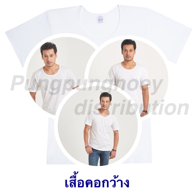 เสื้อตราห่านคู่ เสื้อคอกว้าง สีขาว 1 กล่อง (3 ตัว)
