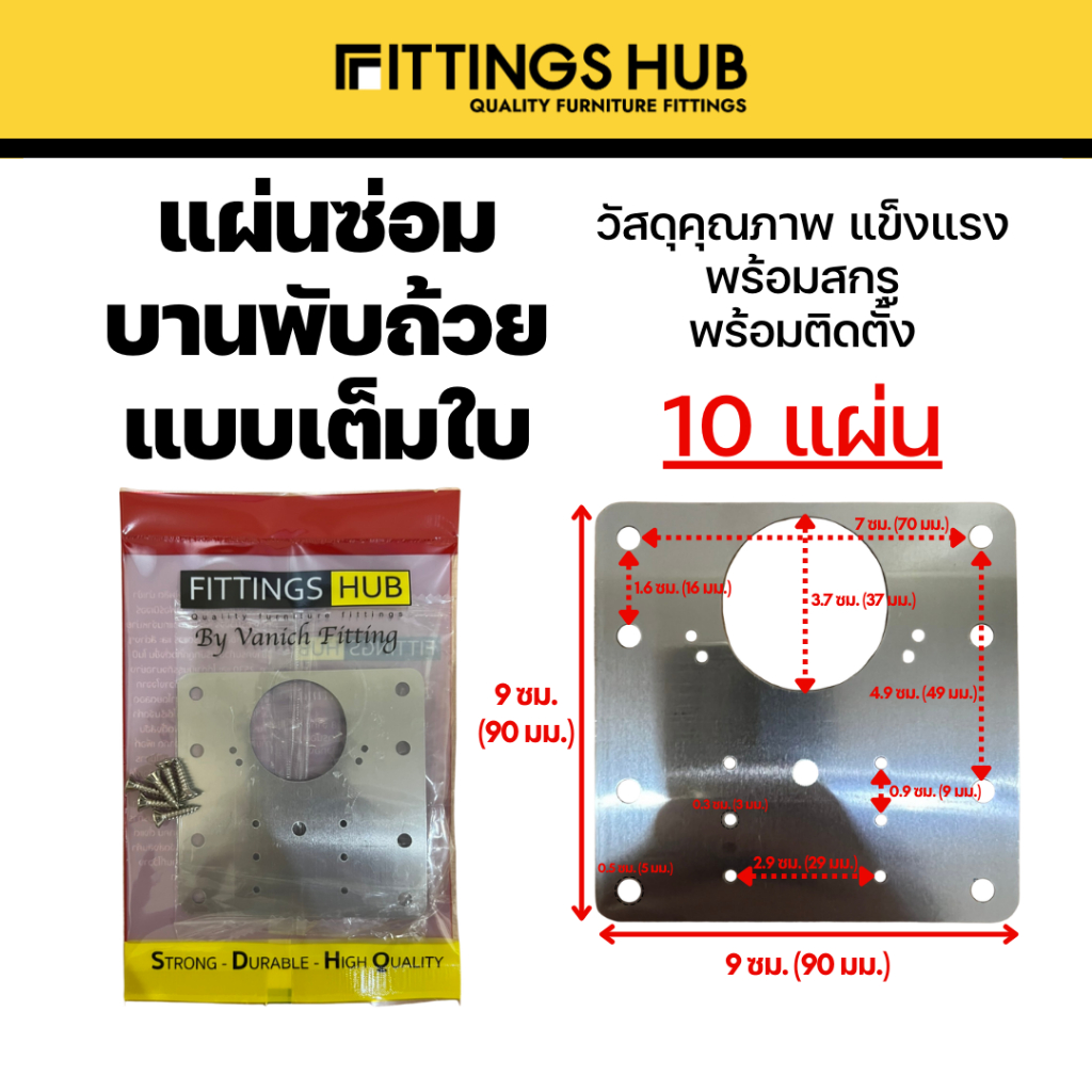 [10แผ่น] แผ่นซ่อมบานพับถ้วย พร้อมสกรู บานพับบานตู้เสื้อผ้า ตู้โชว์ สำหรับบานพับ 35 mm