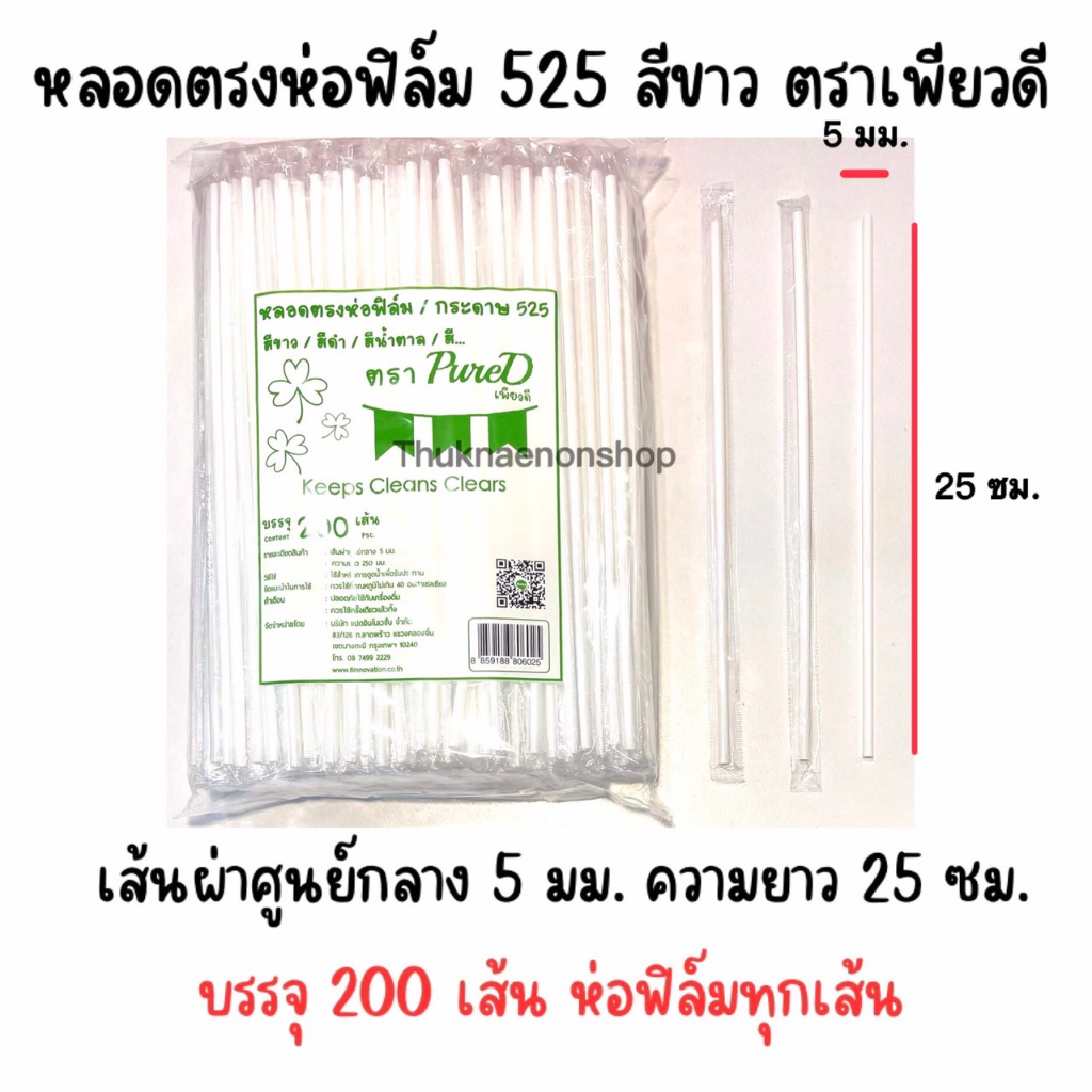 525 หลอดตรงห่อฟิล์ม PureD ตราเพียวดี หลอดตรง สีขาว