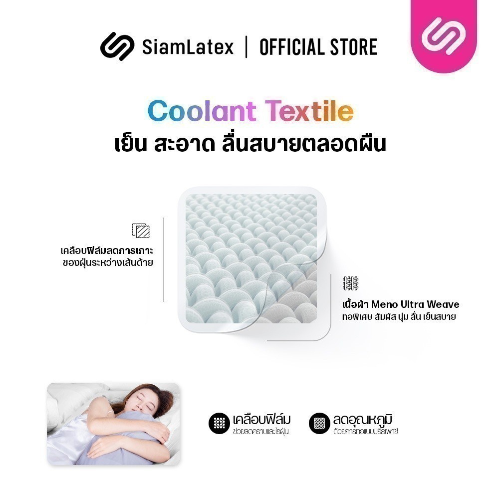 SiamLatex ปลอกหมอนข้าง ปลอกหมอนข้างเย็น Meno ปลอกหมอนข้างสีพื้น ให้สัมผัสเย็นสบาย มีเชือกรูด 2 ด้าน