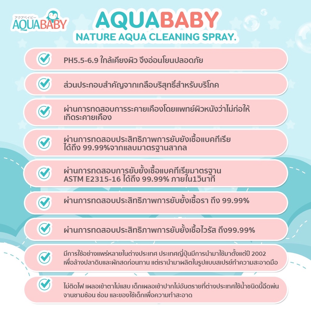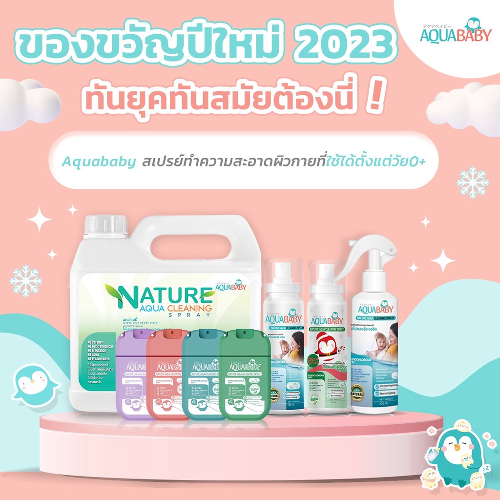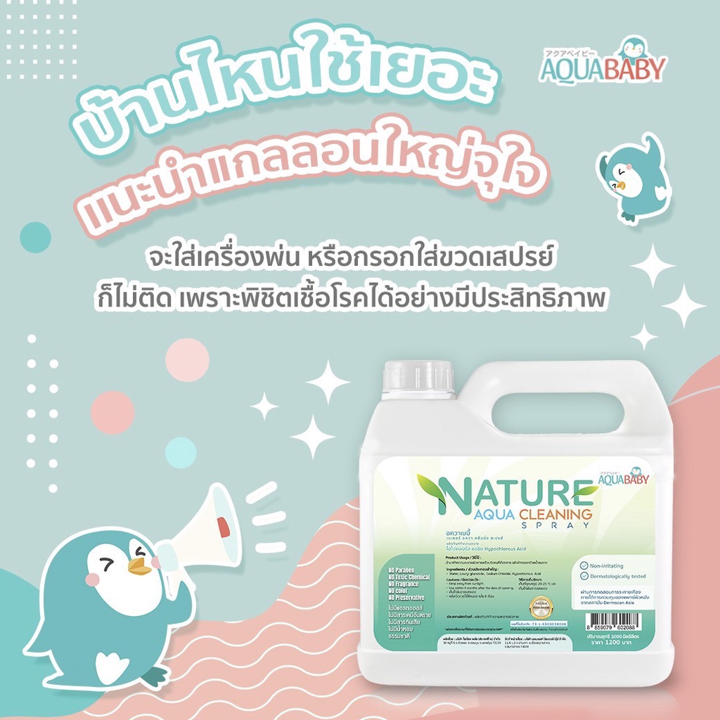 ซื้อ 2แถม 1แกลลอนสำหรับเติมและใส่เครื่องพ่น ผลิตภัณฑ์ทำความสะอาดผิวกายสำหรับเด็ก AQUABABY NATURE AQUA CLEANING SPRAY